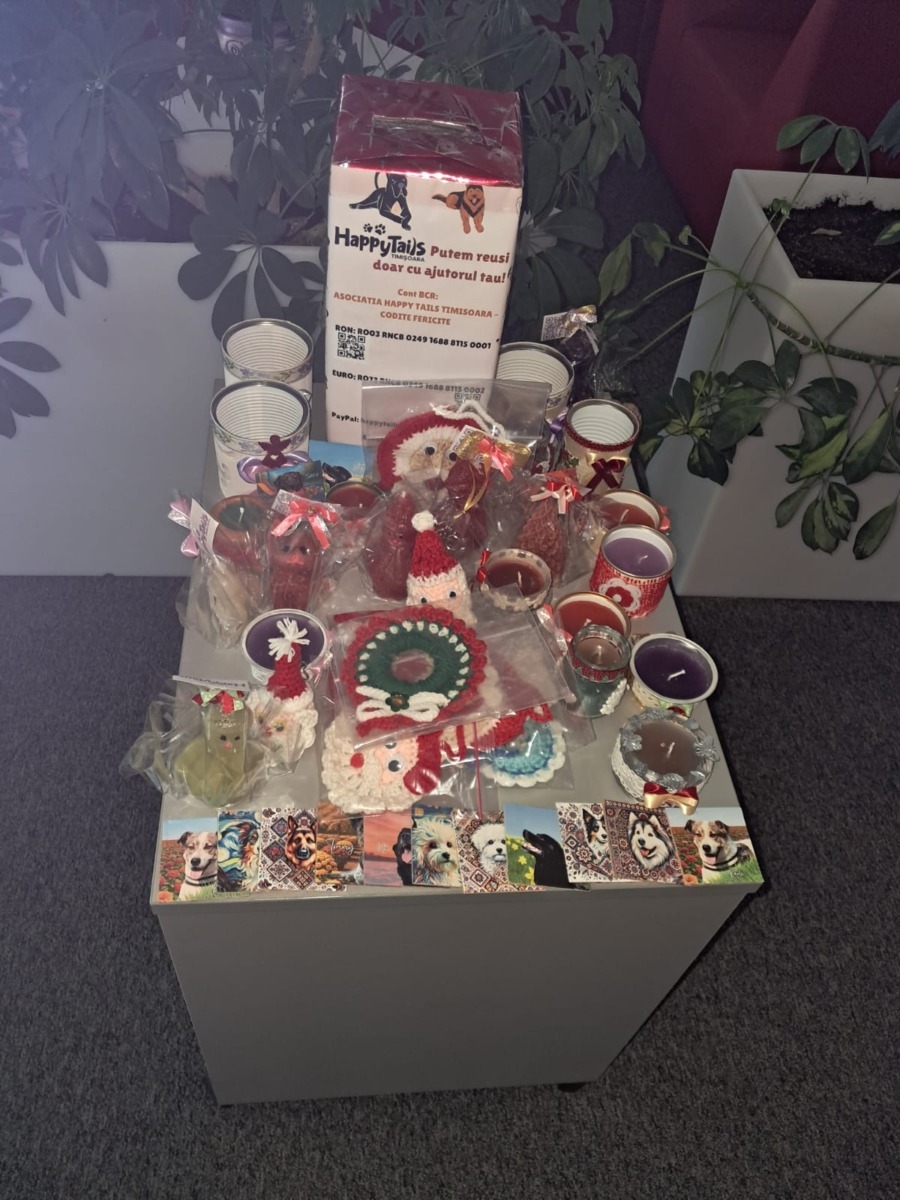 „Nu o să facem târguri de adopție în decembrie, pentru că nu vrem ca aceste suflete să fie cadouri de Crăciun. O să facem târguri de strângeri de fonduri, cum facem în fiecare an. Ne primesc două multinaționale în clădirile lor, la târgurile lor pentru angajați. La târguri oferim produse handmade, create de voluntarii noștri, precum și calendare cu imagini ale cățeilor din adăpost. Târgurile vor fi la începutul lunii decembrie la Continental Automotive și în clădirile Vox. Contra unei donații, oamenii își vor lua un calendar (care pleacă de la 20 de lei), sau un produs creat din materiale biodegradabile, reciclabile, inclusiv din conservele cățeilor, facem diverse suporturi. Un târg de adopție pregătim din nou în februarie, cu ocazia Valentine’s Day”, ne-a mai spus fondatoarea Asociației Happy Tails Timișoara.