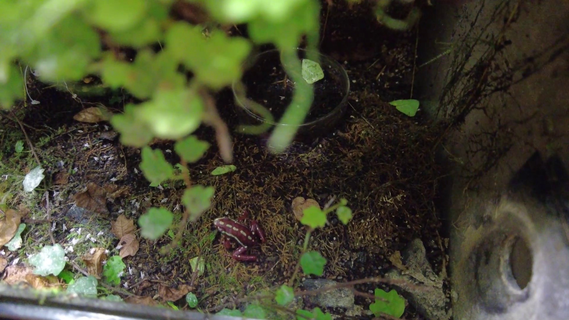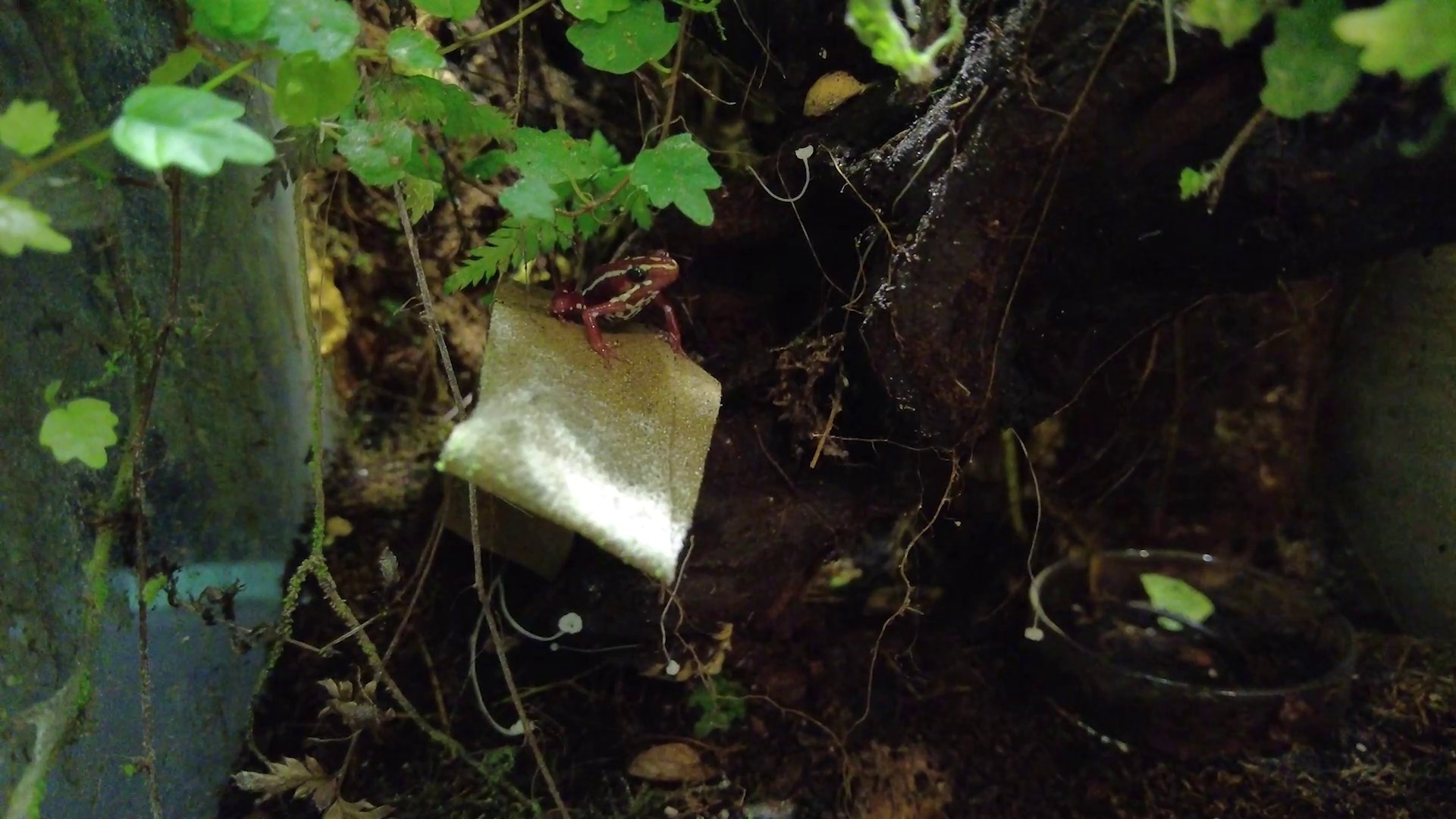 Vlad Rotaru: „În afară de Mourning Gecko, mai am într-un terariu niște broscuțe foarte mici, cât buricul degetului. Se numesc Poison Dart Frogs. Am specia Dendrobates Santa Isabel. Și o caracteristică specială a acestor broscuțe – care provin și ele tot din America de Sud – este că masculii cântă ca să atragă femelele, iar cântecul masculului seamănă cu sunetul unui greieraș foarte mic.
