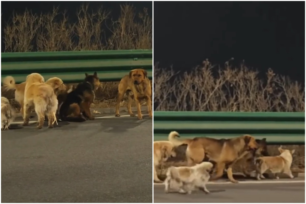 Totul s-a întâmplat în orașul Changchun, unde mai mulți câini — printre care un Golden Retriever, un Labrador, un Ciobănesc German și un Pekinez — au fost filmați mergând împreună pe marginea unei șosele, în condiții de vreme severă de iarnă, potrivit The Guardian.