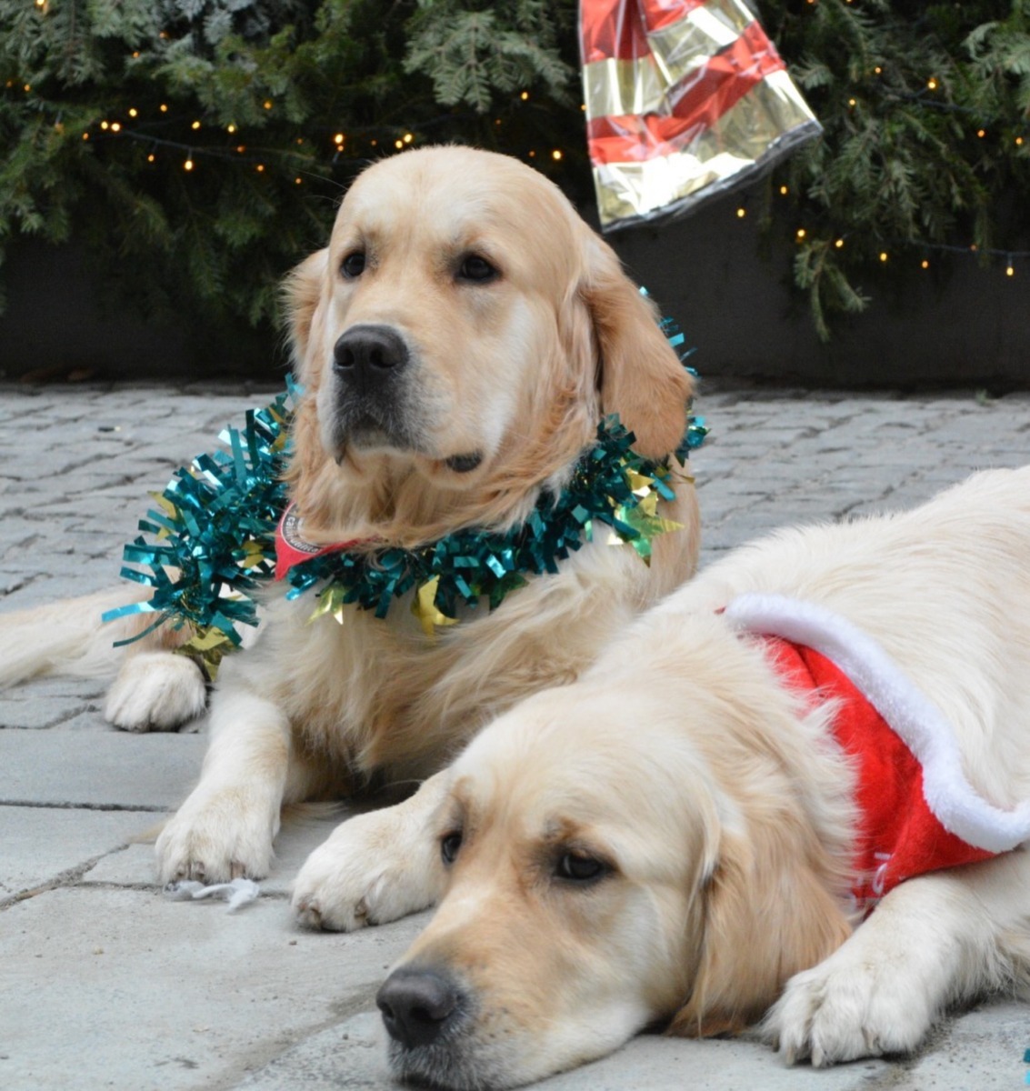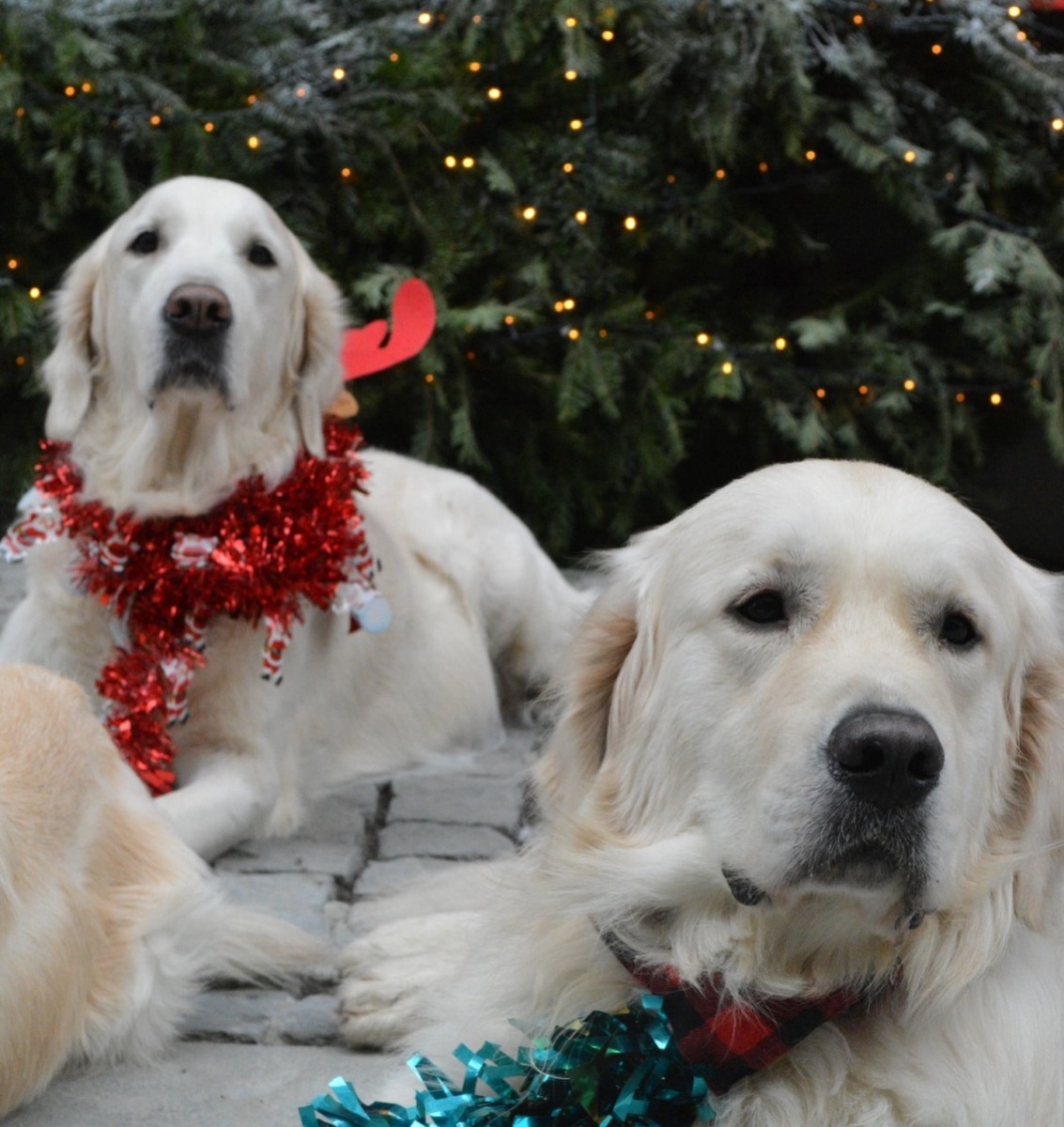 Fotografiile surprind spiritul festiv al sărbătorilor și personalitatea fiecărui câine de terapie. De la priviri jucăușe la zâmbete molcom, fiecare imagine transmite iubirea și devotamentul acestor patrupezi minunați care aduc zâmbete și alinare celor din jur.