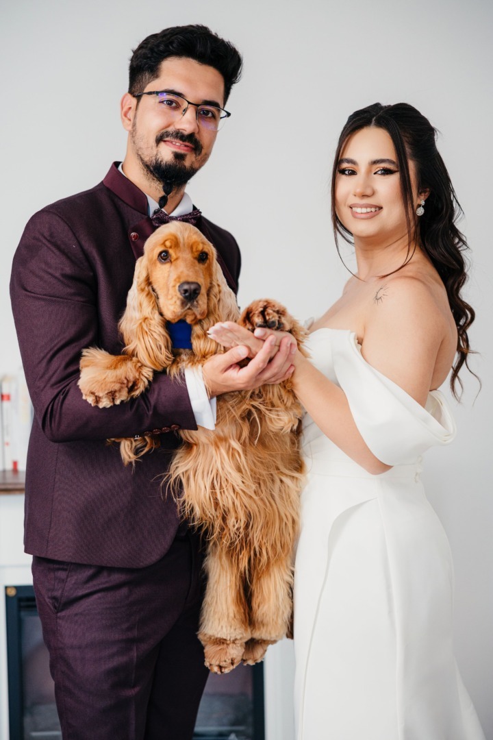 Cățelul Enzo a fost caveler de onoare la nunta „părinților”. Gabriela: „Într-o zi în care totul s-a schimbat, el a fost ancora noastră”