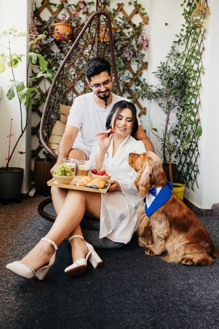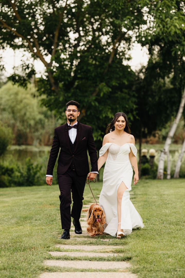 Gabriela: Parcă a simțit că se întâmplă ceva mare. A respectat toate indicațiile, a stat aproape de noi și a fost surprinzător de înțelegător că în acea zi lucrurile se vor desfășura diferit față de o zi normală. Nu știu dacă a înțeles conceptul de „nuntă”, dar sigur a simțit toată dragostea și emoția din jur.