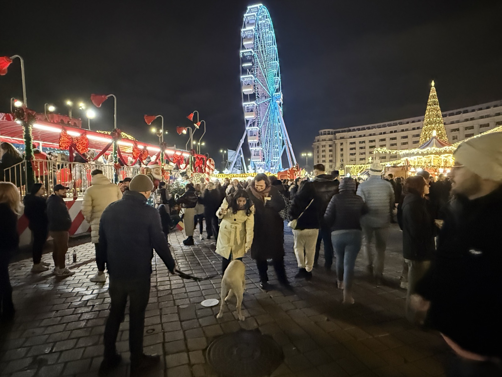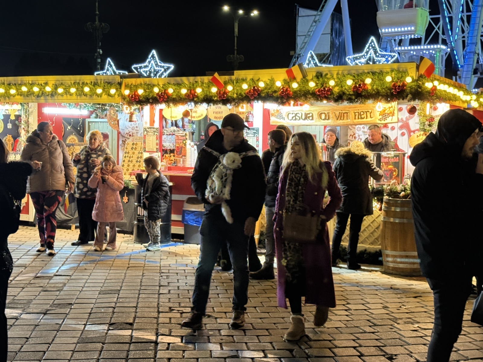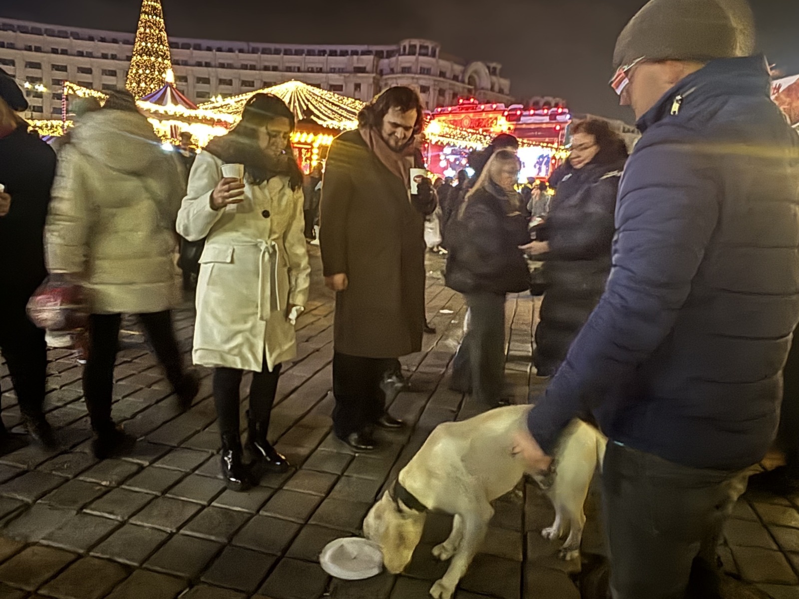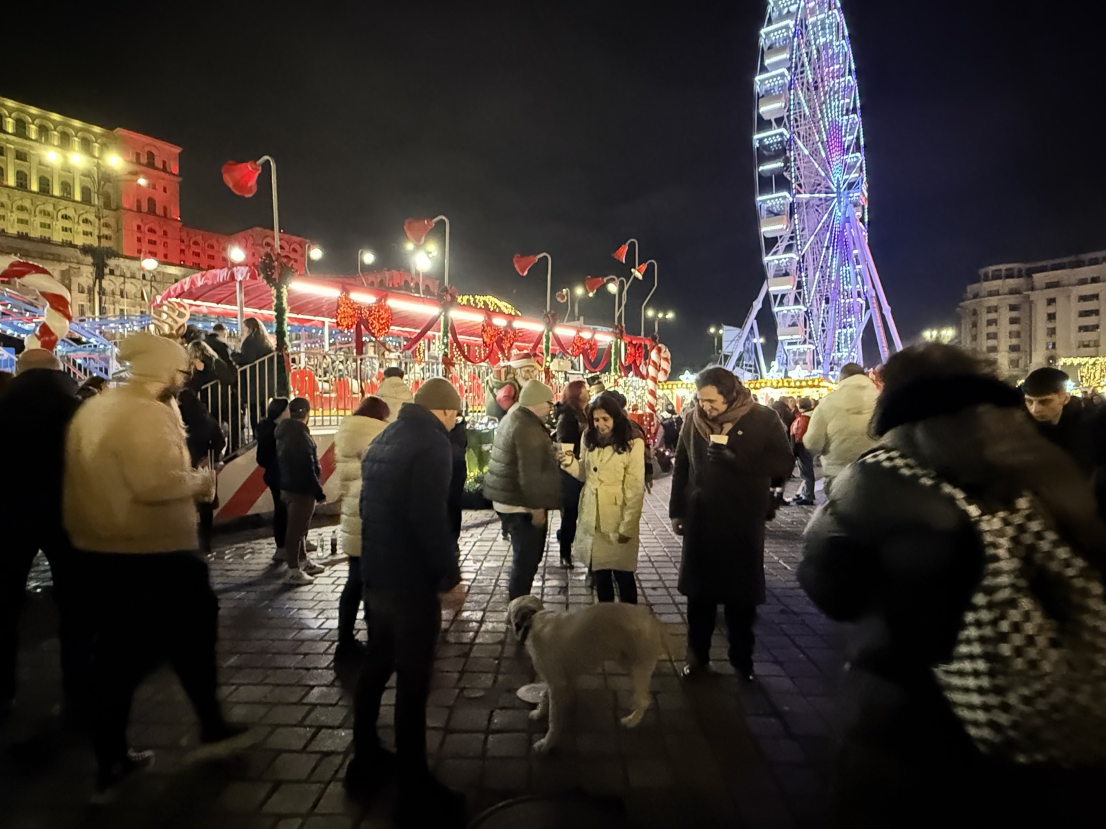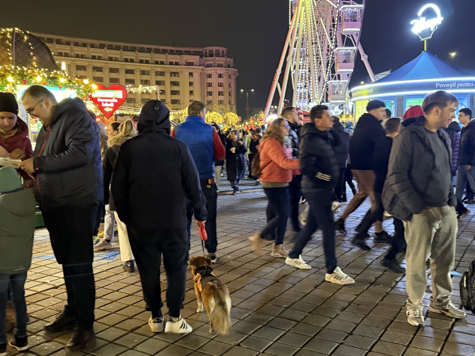 De Ziua Națională, Târgul de Crăciun din București nu a fost animat doar de colinde, vin fiert și luminițe, ci și de zeci de căței bucuroși, care s-au plimbat alături de stăpânii lor printre decoruri strălucitoare și standuri pline de surprize. Energia lor s-a potrivit perfect cu atmosfera caldă a sărbătorilor, iar vizitatorii au zâmbit adesea doar văzându-i cum se bucură. De la rase mici și până la patrupede de talie mare, toți păreau fascinați de atmosfera festivă. Mulți au purtat jachete colorate, pufoase sau chiar haioase, unele inspirate din celebrul personaj Grinch, spre deliciul trecătorilor. Oamenii s-au oprit adesea pentru a-i admira, pentru o mângâiere scurtă sau pentru a face o fotografie, încântați de modul în care cățeii completau magia sărbătorilor.