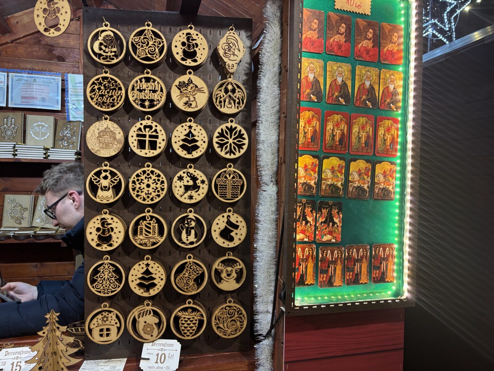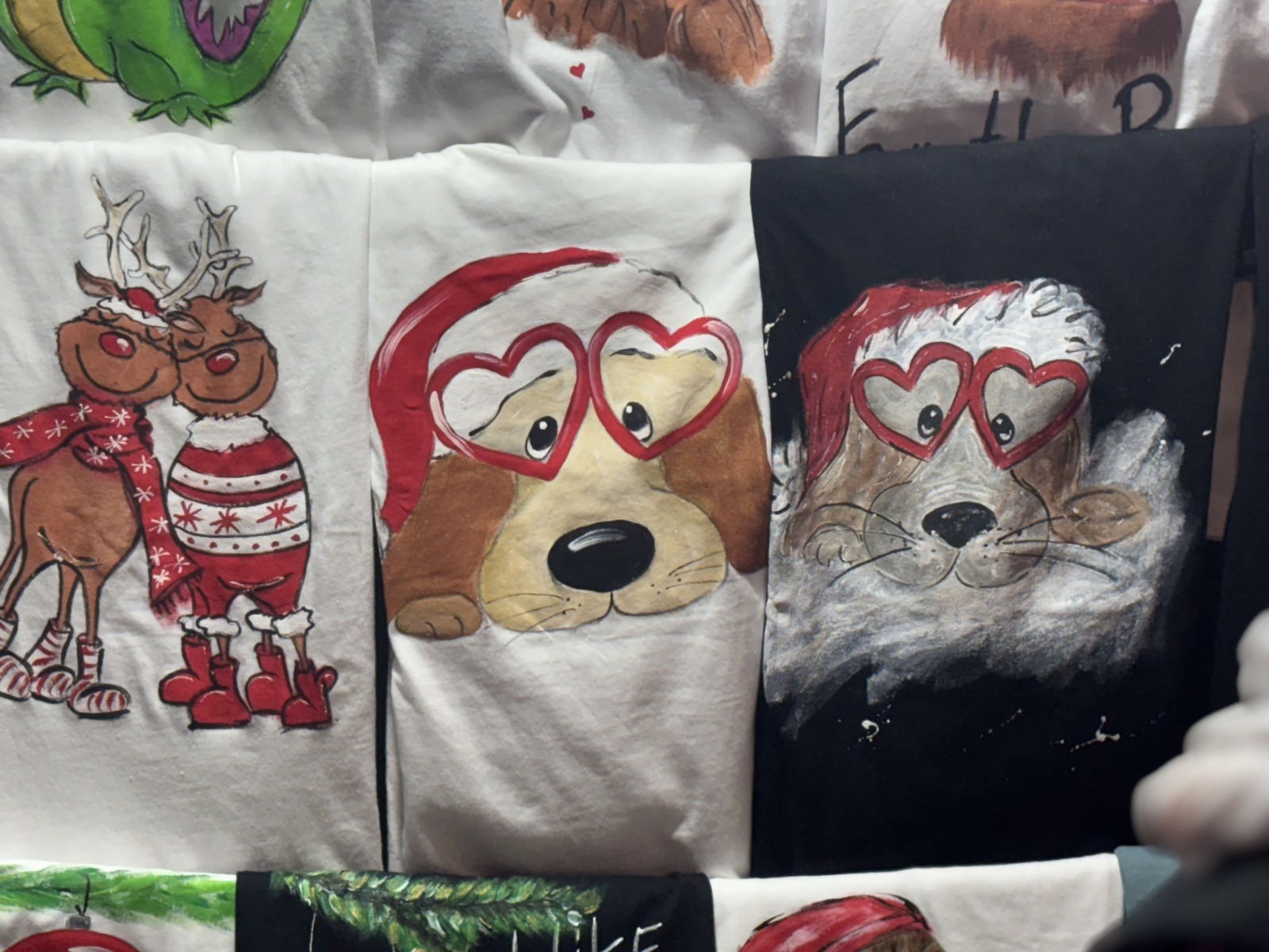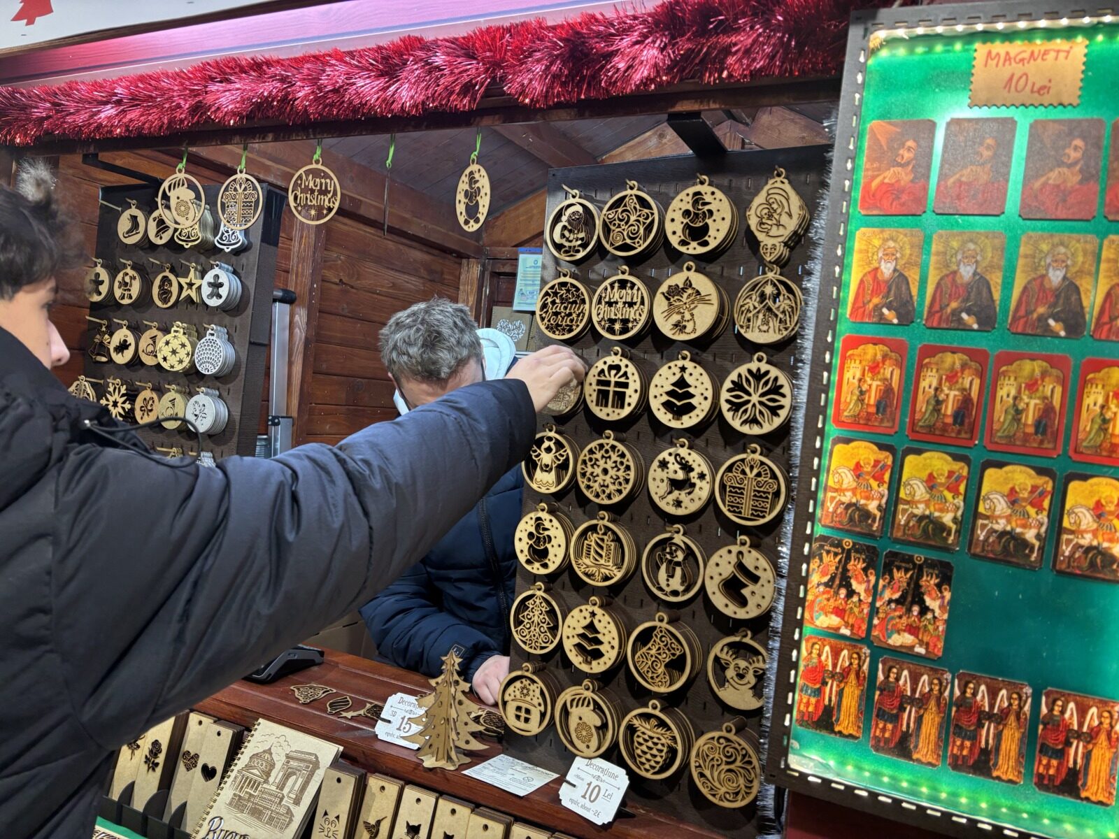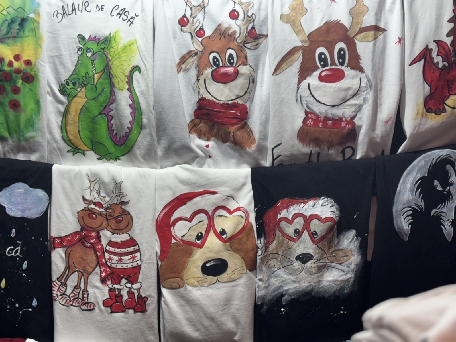 Poate printre cele mai vizitate standuri s-au numărat cele dedicate iubitorilor de animale: ornamente din lemn pentru brad în formă de câine sau pisică, agende personalizate și chiar creații handmade. Una dintre piesele care au atras privirile tuturor a fost un tricou pictat manual, cu un câine extrem de expresiv, un “smart dog” artistic, vândut la 125 de lei. Era genul de obiect pe care îl cumperi nu doar pentru că arată bine, ci pentru că transmite emoție și personalitate.