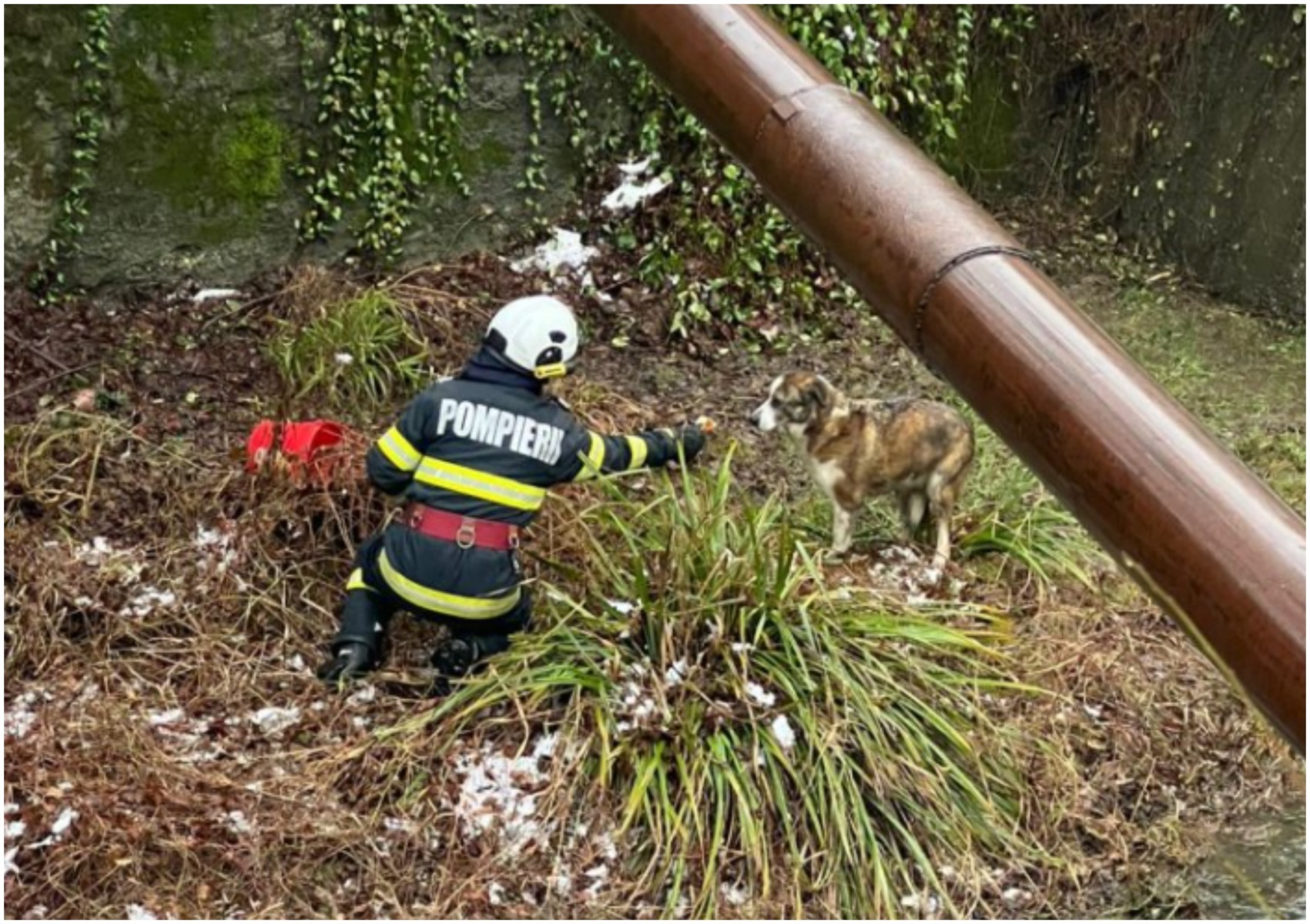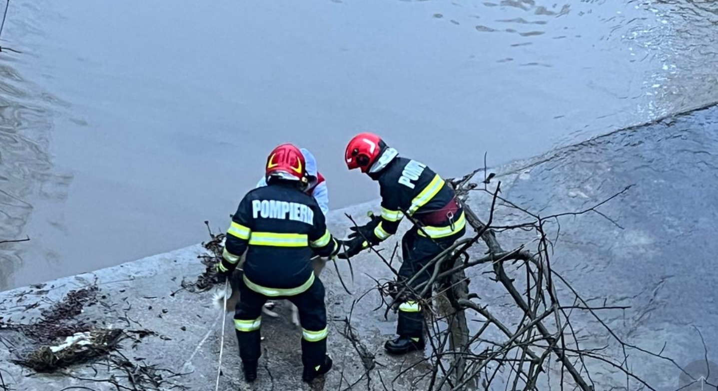 Intervenția pompierilor a fost una dificilă, date fiind condițiile, însă salvatorii au reușit să ajungă la animal în siguranță. Acesta a fost preluat cu bine din zona plină de apă. Din fericire, cățelul nu a suferit răni și nu a avut nevoie de îngrijiri medicale.