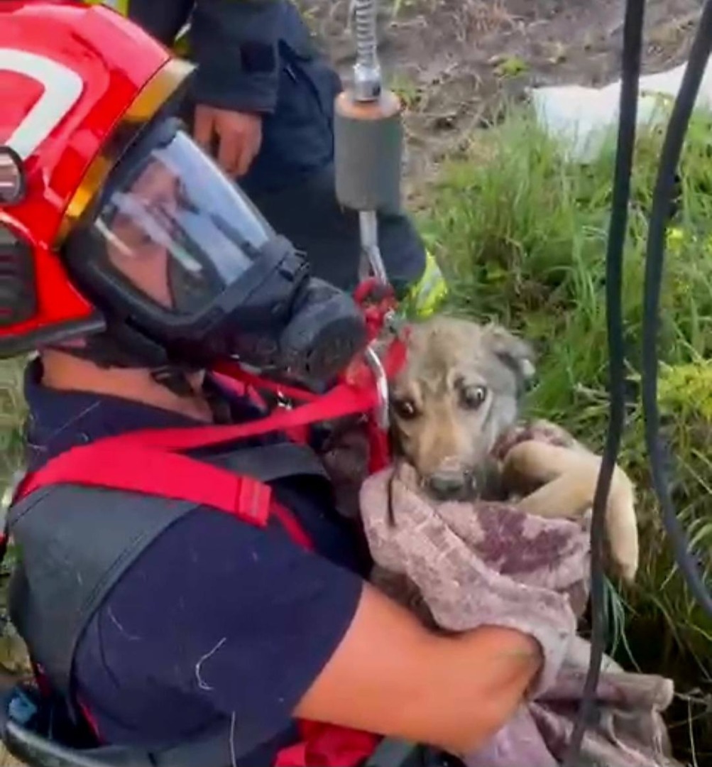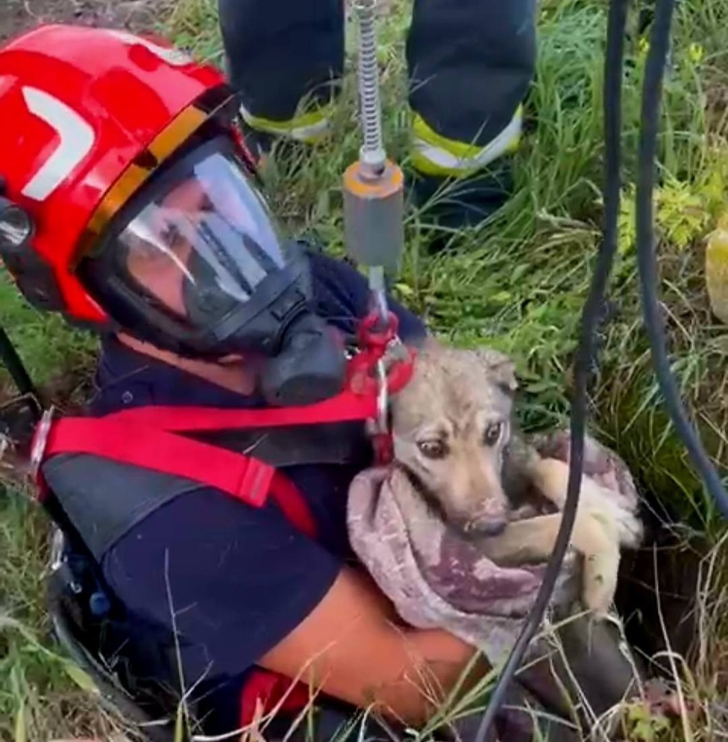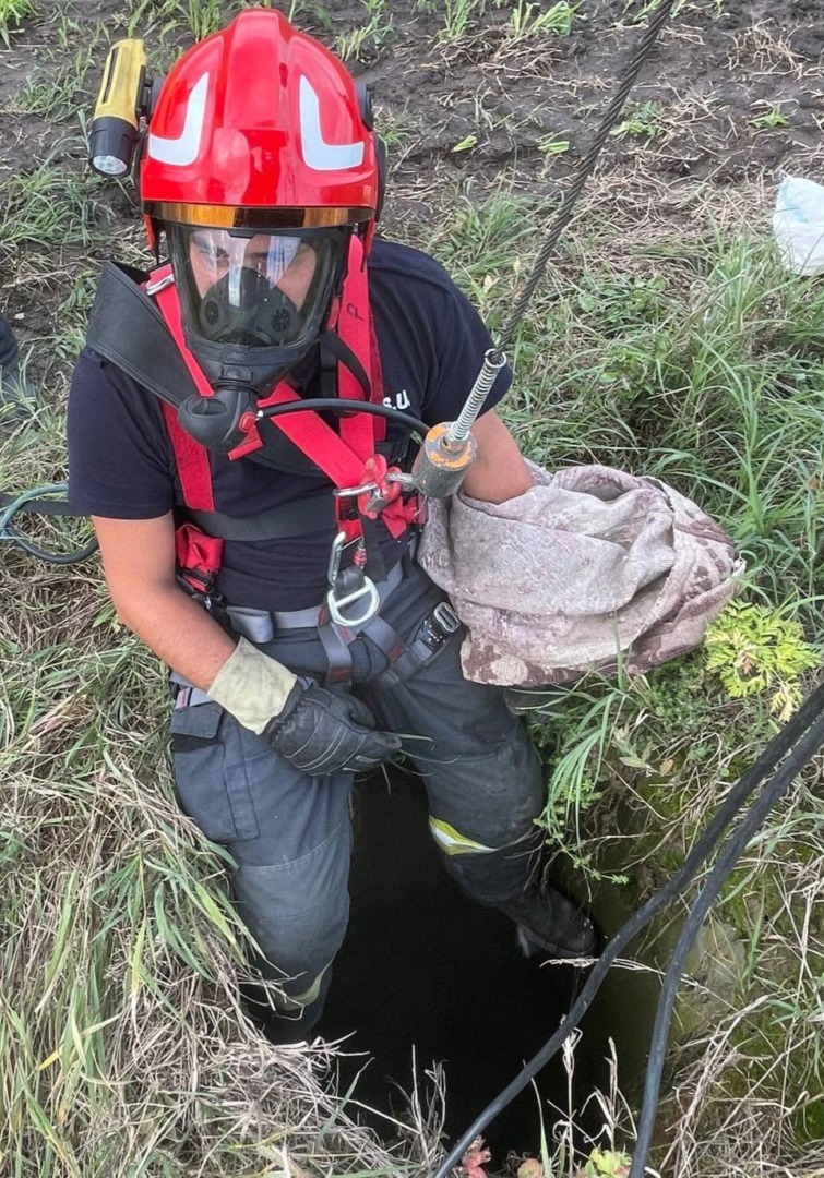 La fața locului au intervenit prompt pompierii militari călărășeni, chemați de localnici îngrijorați. Cățelul ajunsese la o adâncime de aproximativ 15 metri, iar salvarea nu a fost deloc simplă. Echipajul profesionist din cadrul Detașamentului Călărași a folosit autoscara mecanică și echipamente speciale pentru a coborî în siguranță și a-l recupera pe micul ghinionist.