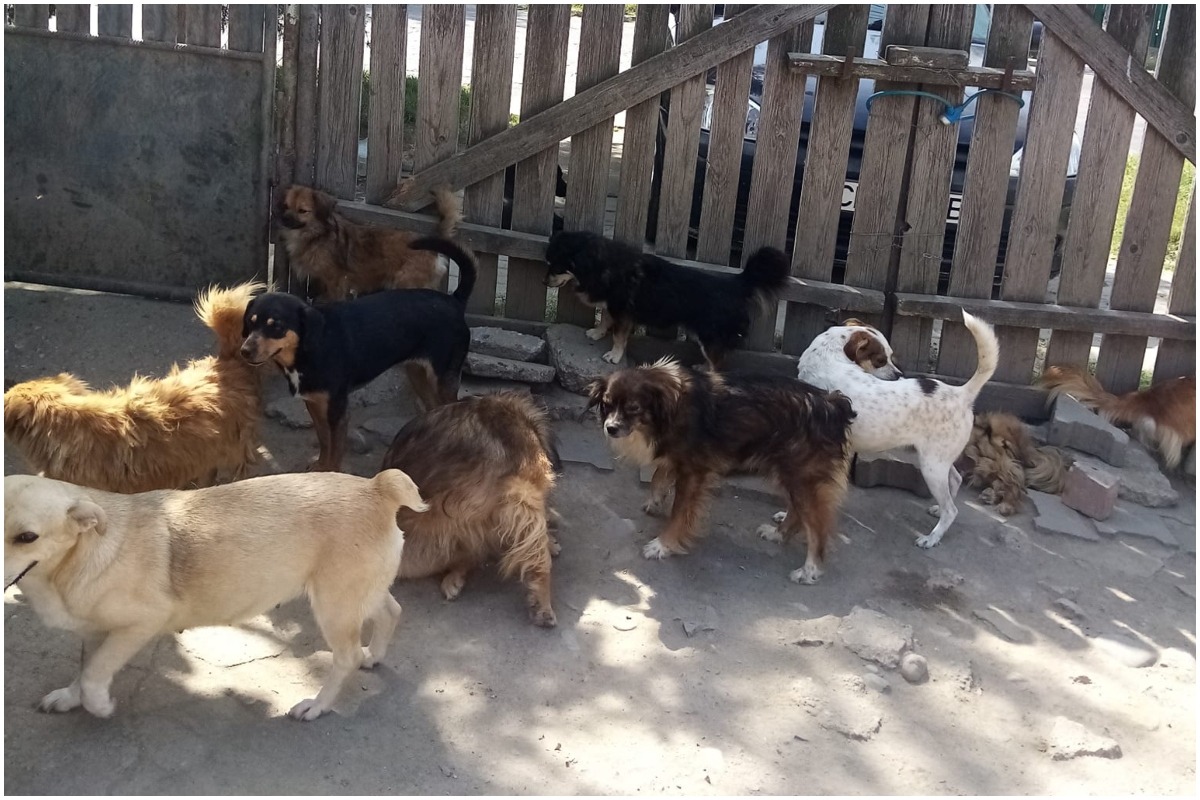 Câini fără stăpân în fața unui gard sursa foto: Facebook - Protecția Animalelor Cluj-Napoca