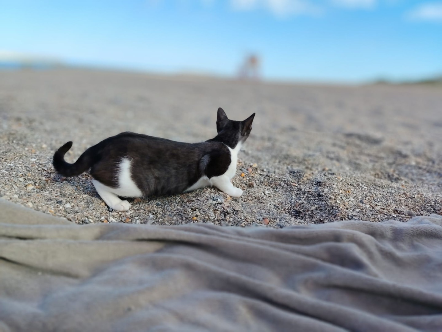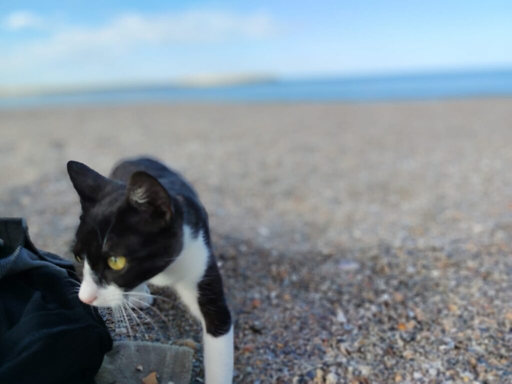 Noi am avut noroc cu o zi liniștită, o plajă pustie și o pisică destul de curioasă încât să se bucure de experiență.