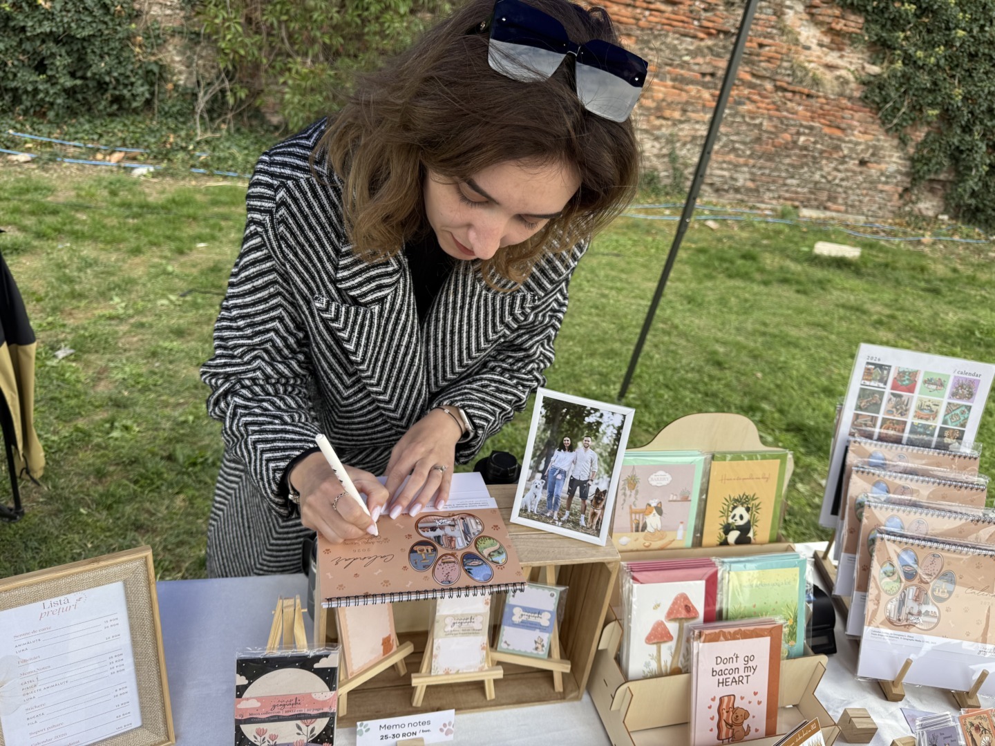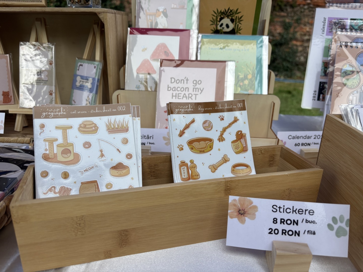 Toate creațiile ei sunt pline de culoare și veselie, inspirate din natură, frumos și din animăluțele care ne aduc zâmbete. Fie că este vorba despre un cățel, un hamster, un papagal sau orice alt companion, Georgiana a reușit să transpună emoția în obiecte deosebite: calendarul pentru 2026, planificatorul nedatat, memo notes, semne de carte, felicitări, stickere și suporturi pentru pahare.
