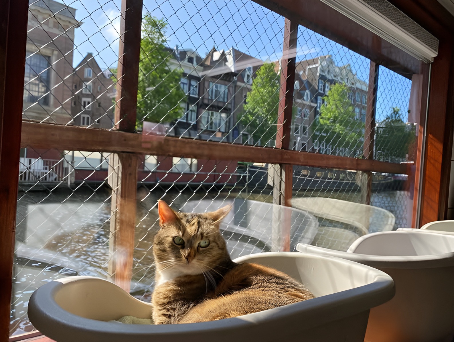 Barca cu pisici, sau De Poezenboot, se află în Amsterdam, ancorată pe canalul Singel, și adăpostește zeci se pisici salvate și abandonate. Ambarcațiunea a fost adaptată special pentru feline, cu zone interioare de dormit, punți exterioare și spații liniștite unde acestea se pot relaxa.
