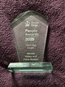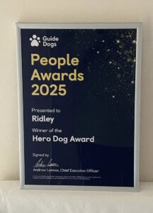 Un câine-ghid a fost premiat în semn de recunoaștere a întregii sale activități. Ridley, un golden retriever negru încrucișat cu labrador, în vârstă de 11ani, din Dawlish, Devon (Marea Britanie), a câștigat premiul Hero Dog Award la Premiile Guide Dogs People pentru anul 2025.