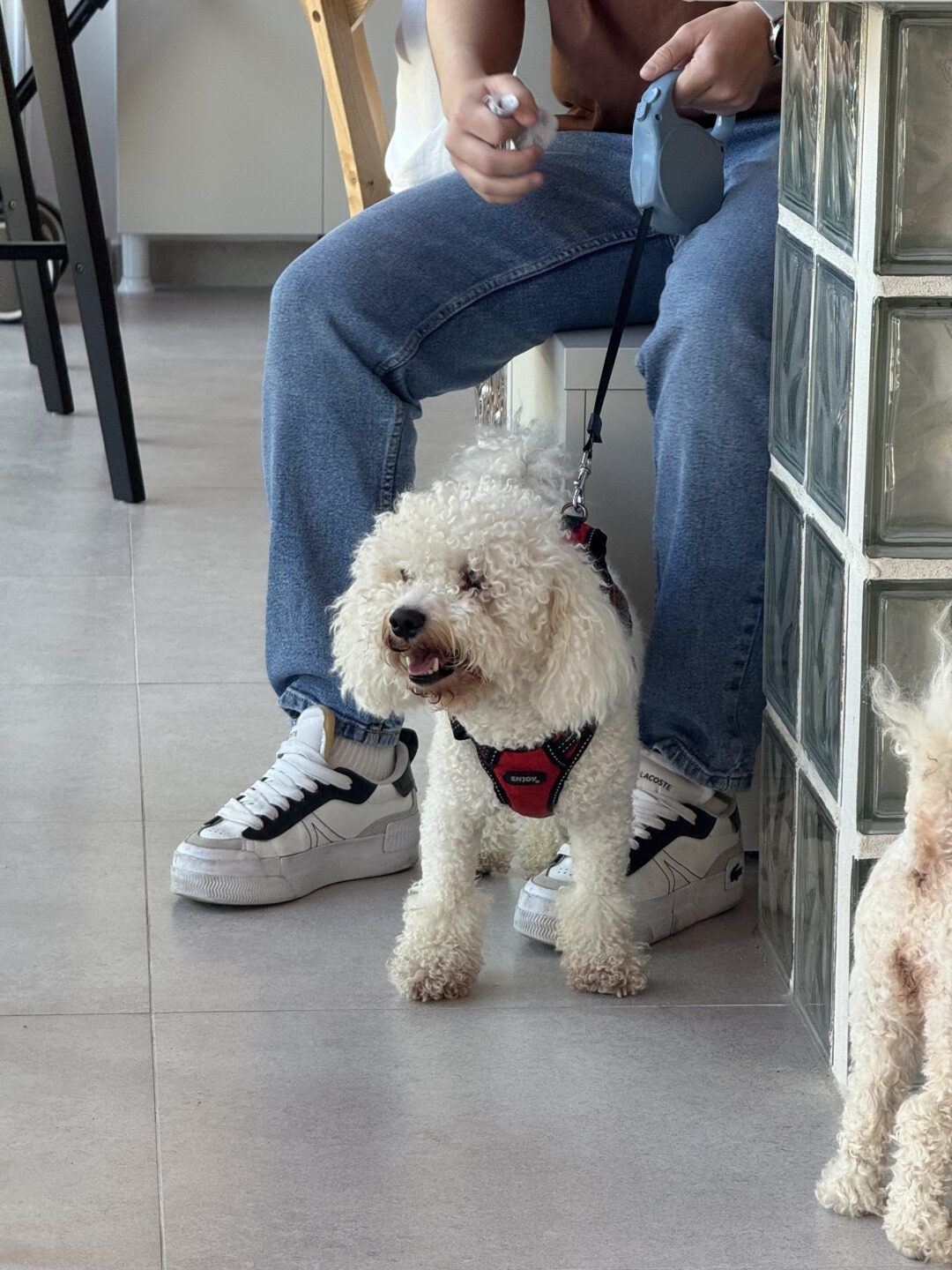 Atât în cafenea, cât și afară, sunt plasate boluri cu apă pentru prietenii blănoși. Spațiul nu are încă facilități în plus pentru animalele de companie, dar cățeii primesc apă din partea casei.