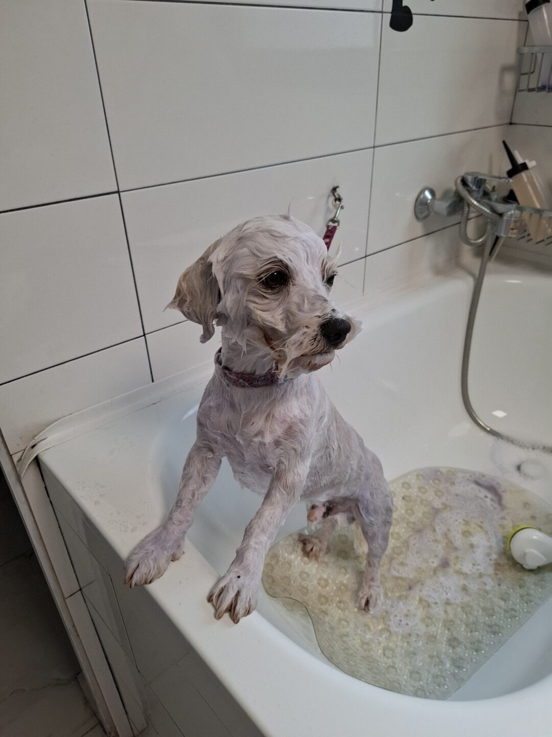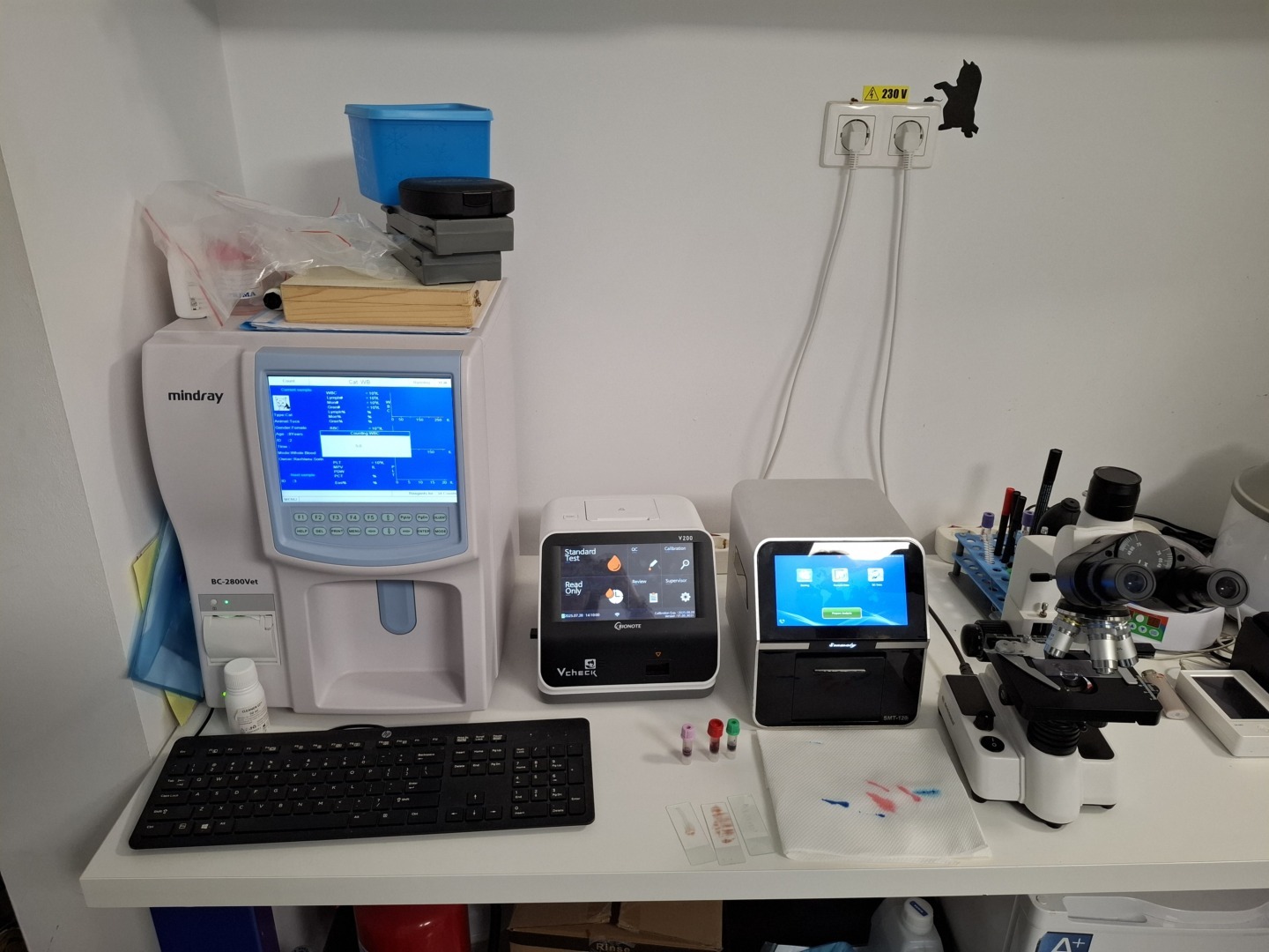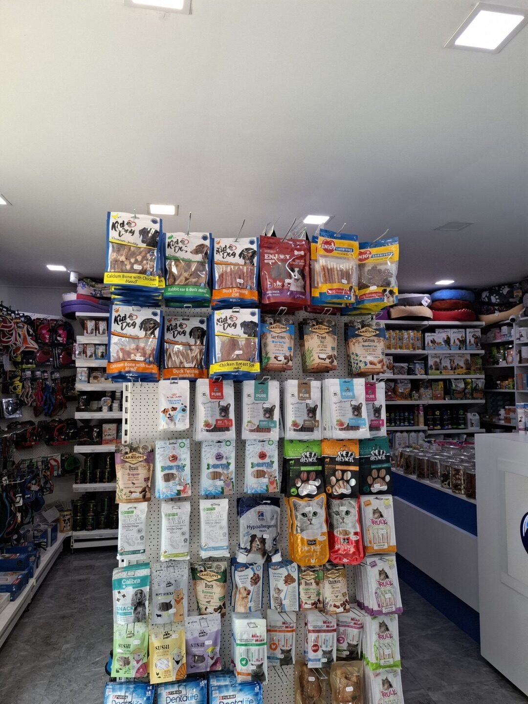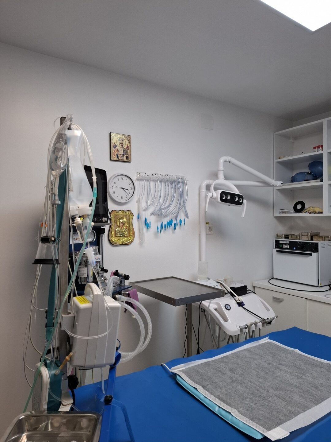 Într-o zi călduroasă de iulie, am intrat în cabinetul Mvet, unde mă aștepta la recepție Medeea Iliopolos. La intrare se află un mini petshop cu accesorii pentru animale, jucării și mâncare. La capătul culoarului există două uși: prima este pentru controale medicale, chirurgie și cazare, iar în dreapta este salonul de tuns al câinilor.