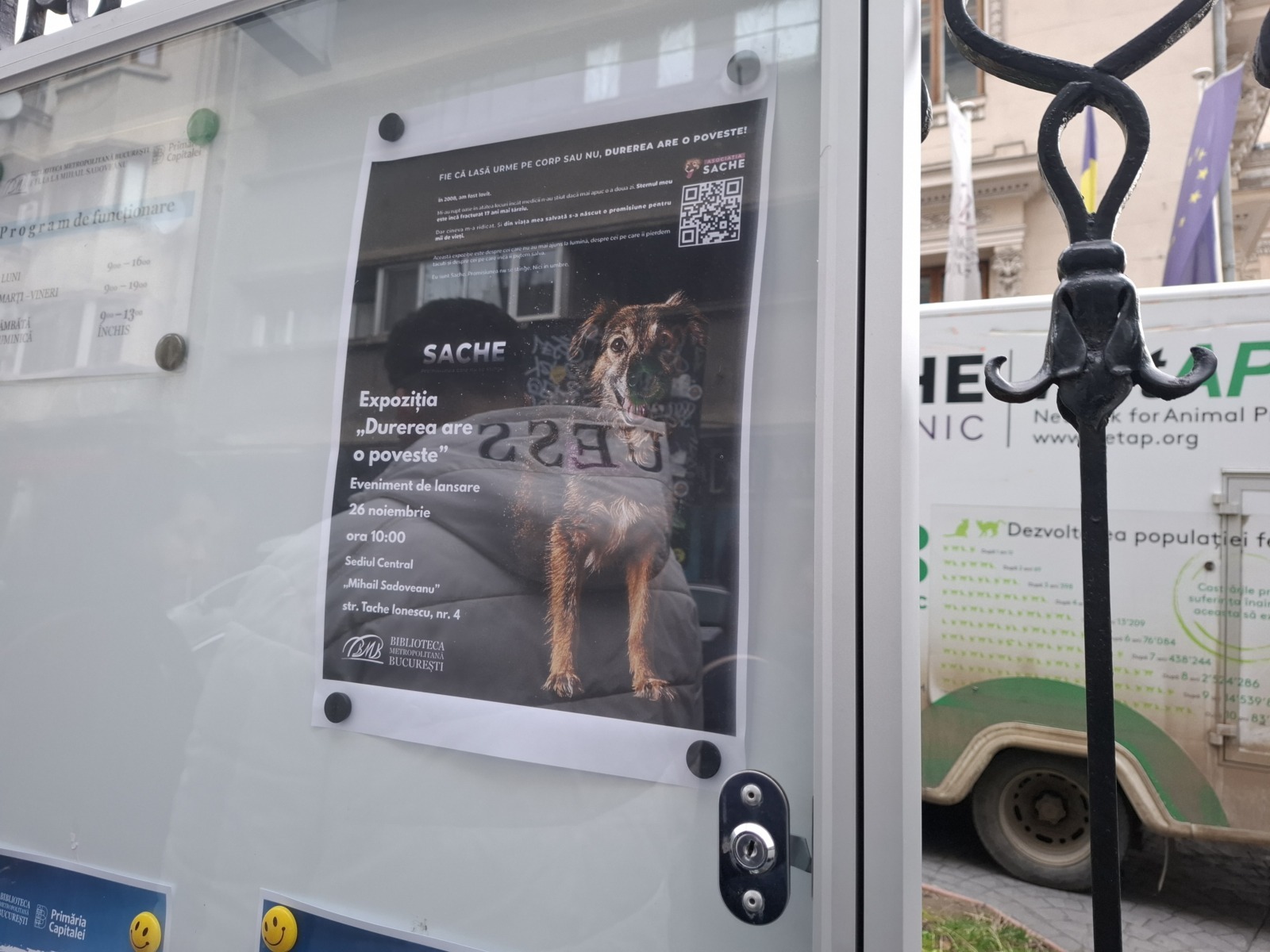 Biblioteca metropolitană “Mihail Sadoveanu” din București a fost gazda expoziției “Durerea are o poveste”, care a expus cazul a 14 animale salvate de Asociațiea “Sache Vet”. Numărul nu a fost ales întâmplător, ci este numărul de lovituri pe care cățelușa Katya l-a primit de la stăpânul său.