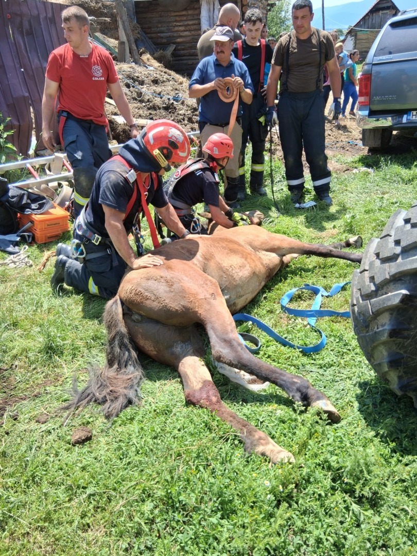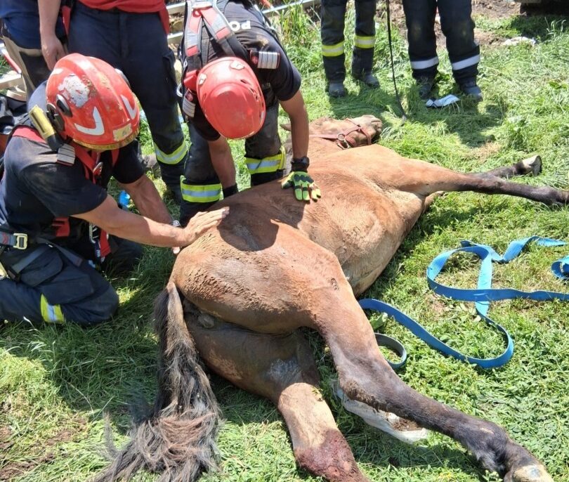 Inspectoratul pentru Situații de Urgență (ISU) Harghita a transmis că, la fața locului, pompierii militari din cadrul Detașamentului Miercurea Ciuc au intervenit rapid, iar doi dintre salvatori au coborât în puț cu ajutorul corzilor, asigurând calul cu chingi speciale pentru a-l putea ridica în siguranță.