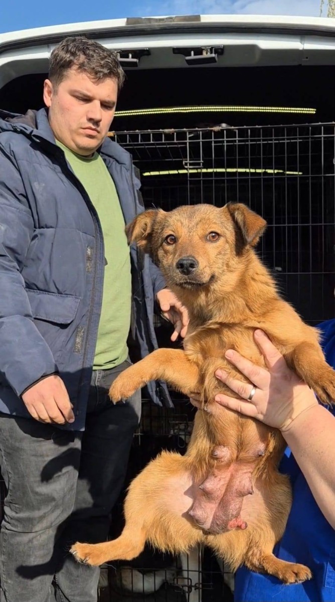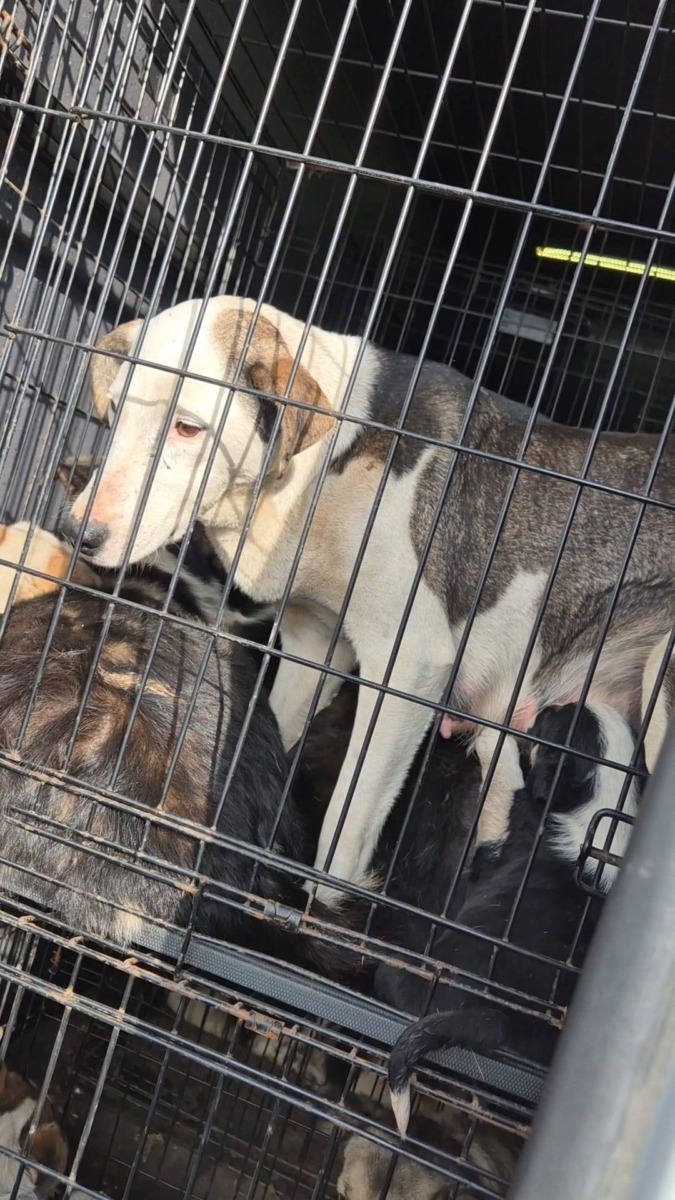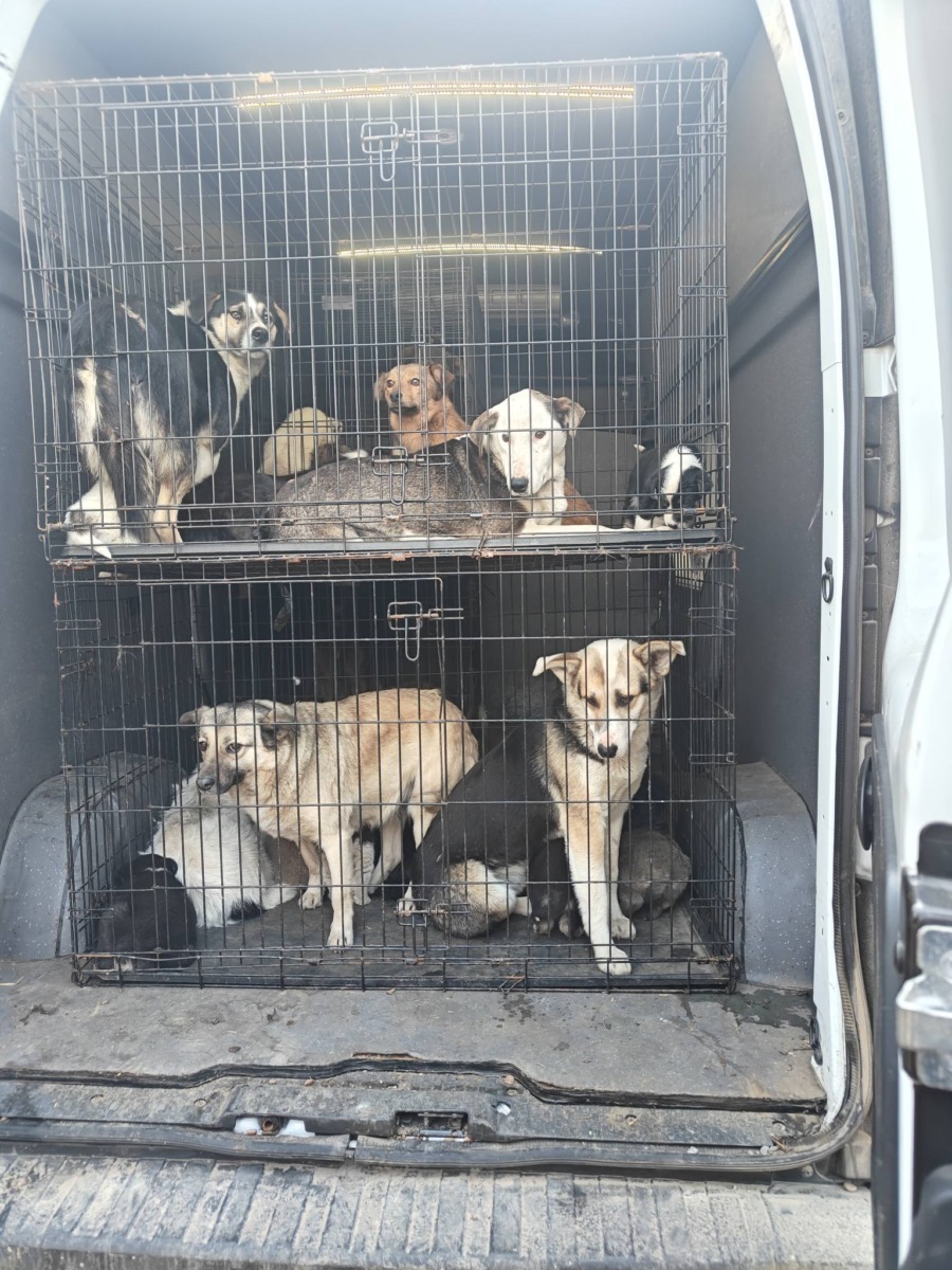 Ceea ce a descoperit în dubă depășea orice explicație: patru cuști, 29 de câini amestecați fără niciun criteriu și un pui de câteva zile, așezat împreună cu mama sa și cu câini adulți care îl loveau fără să vrea. În același timp, o cățelușă tranchilizată a reușit să fugă, reamintind că instinctul de supraviețuire este adesea singura șansă pentru animale.