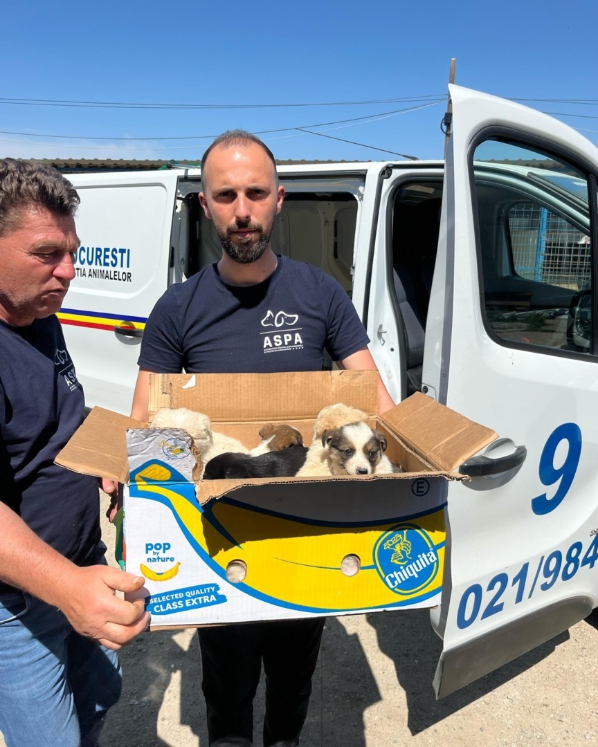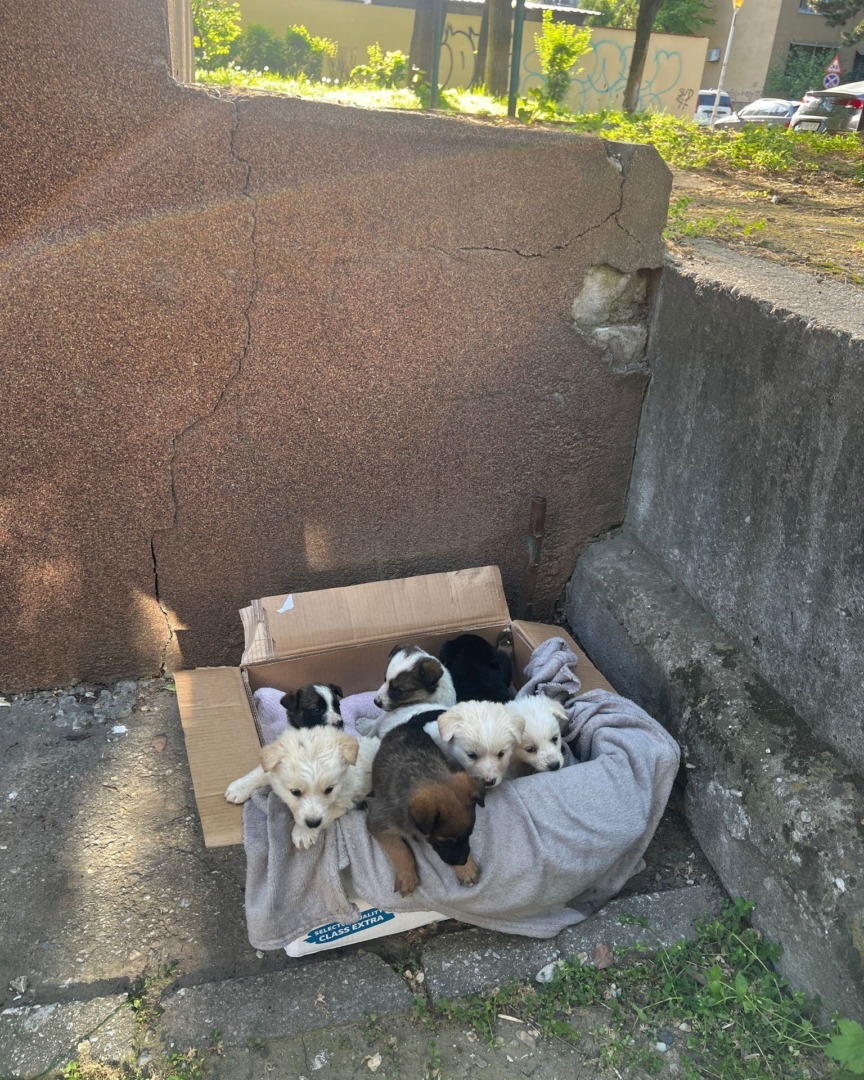 Tot luni, în sectorul 6, 7 pui abandonați într-o cutie de carton au fost găsiți pe Aleea Calatis, în cartierul Drumul Taberei. Micuții, în vârstă de aproximativ 2 luni, au fost preluați de ASPA și transportați la adăpost pentru îngrijiri.