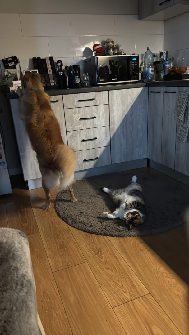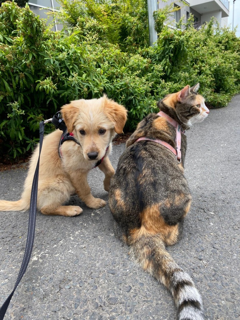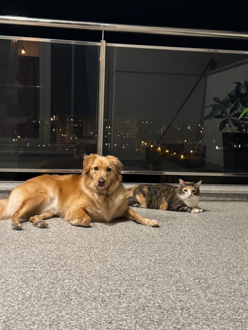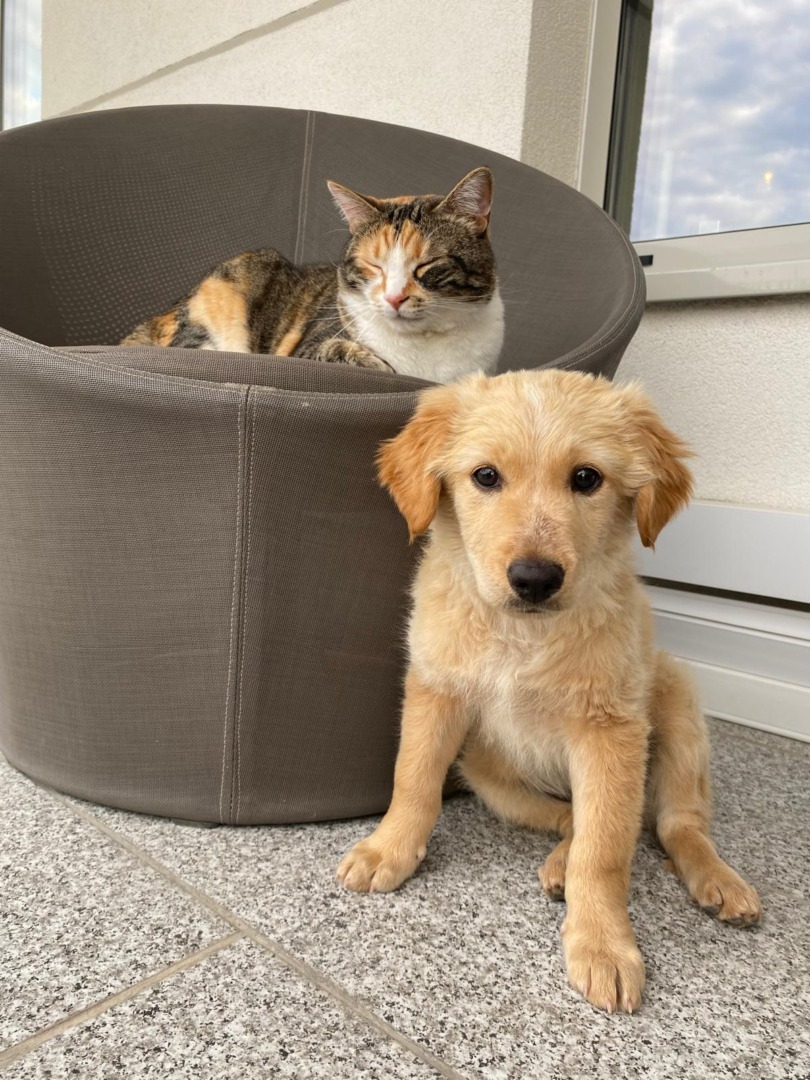 Așa a ajuns ShaSha în viața noastră, printr-o întâmplare și prin intermediul unei prietene. ShaSha este un amestec de Golden Retriever. Are doi ani și jumătate și am luat-o când era doar un pui, de câteva luni. Se înțelege minunat cu SuiSui, care face șapte ani în noiembrie. Sunt copiii mei. De multe ori le scot împreună la plimbare și este o bucurie să le văd cum se joacă.