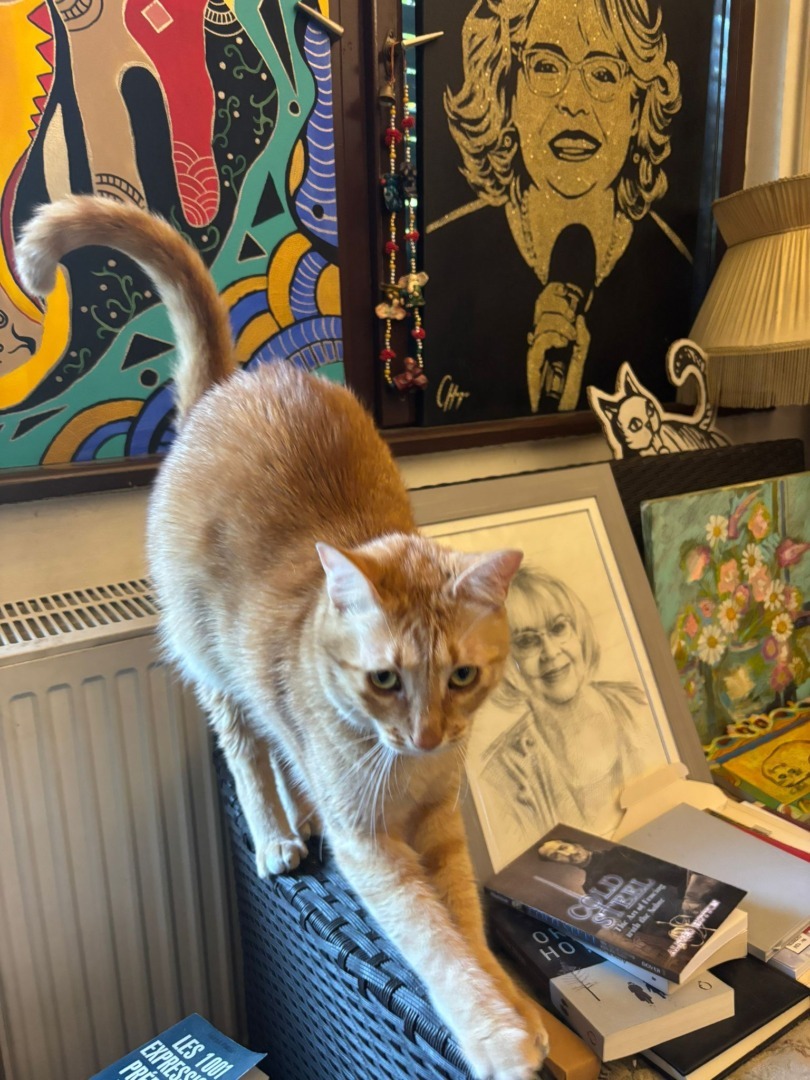Pisicile au fost mereu prezente: Fellini și Martini, apoi Ritz, un motan birmanez cu ochi albaștri care a trăit peste două decenii. Iar în prezent, MissT, o pisicuță roșcată și tigrată, o domnișoară cochetă care adoră să se uite la filme împreună cu stăpâna ei.