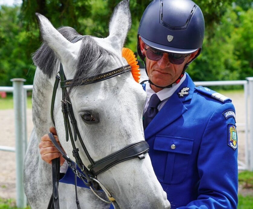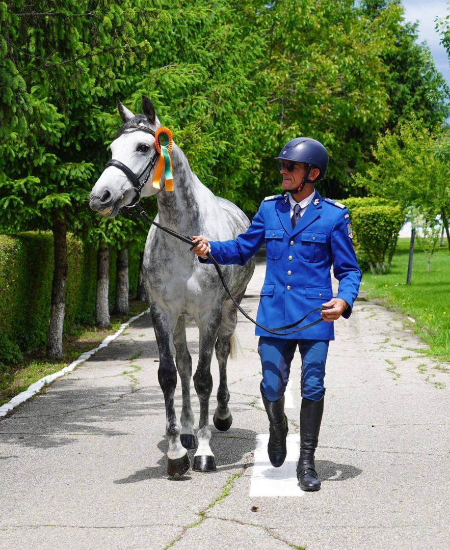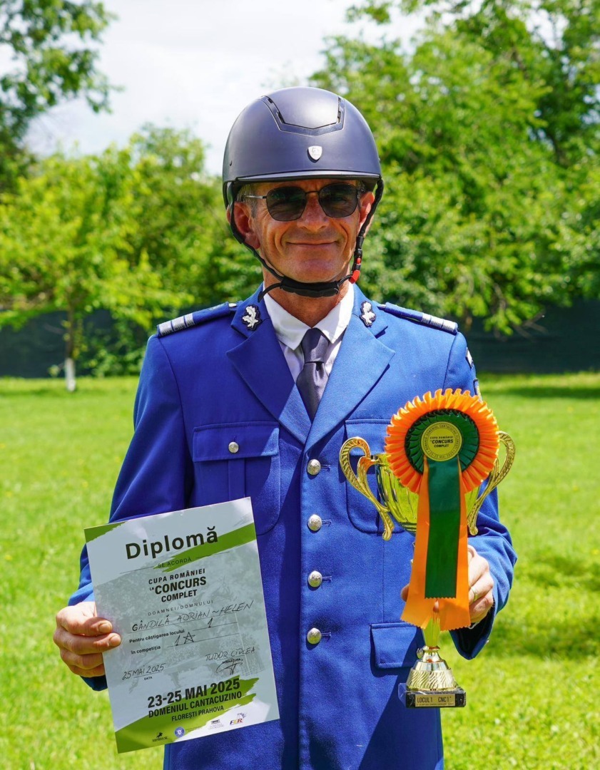 ”Colegul nostru, plt. maj. Adrian Gândilă din cadrul Bazei de Administrare a Jandarmeriei Române, alături de iapa Helen, a obținut locul I la Cupa României la echitație, demonstrând pasiune, disciplină și o legătură aparte cu partenera sa de concurs.