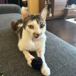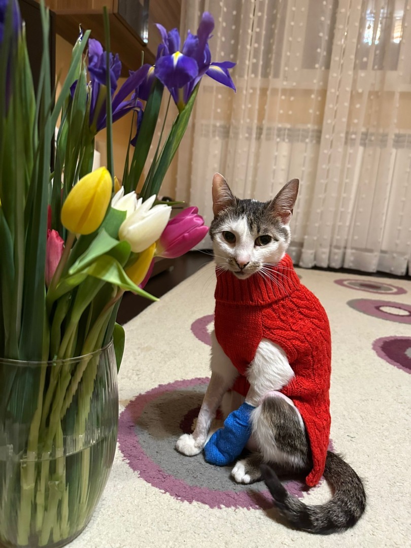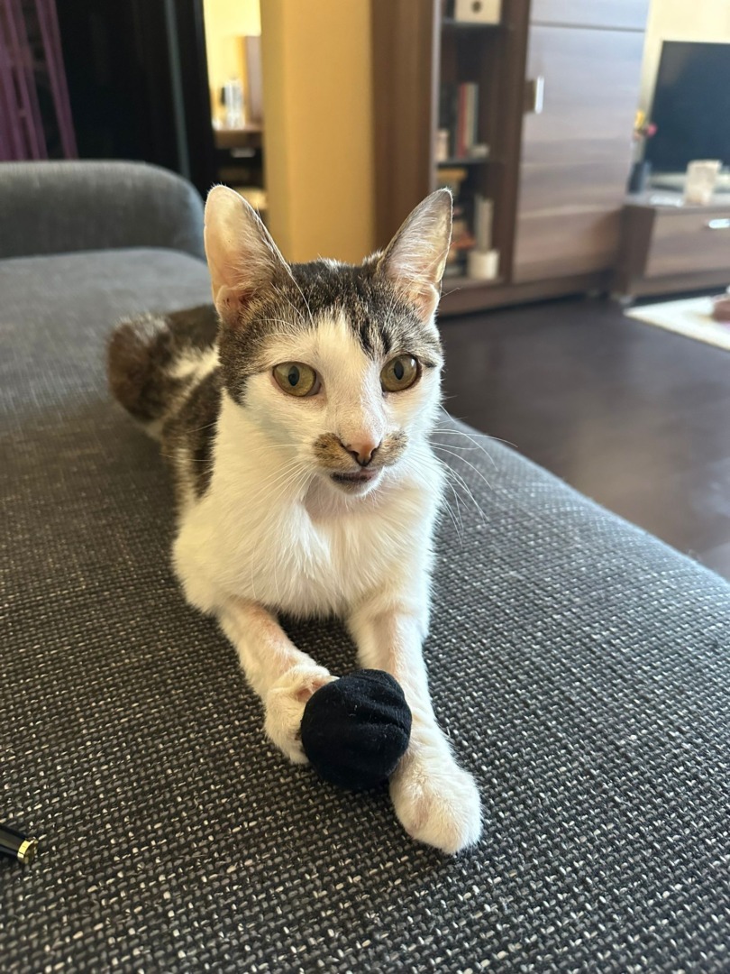 Denisa Pîrvuleț: Când le-am întrebat pe fete despre el, mi-au povestit că este bolnav cronic, dar pentru că era foarte activ, am hotărât să îl iau în foster, să aibă și el o vâjâială unde să alerge și să facă lucruri pisicești. Problemele lui au venit în valuri și au fost multe, dar cum să nu te îndrăgostești de boticul care are o inimioară?