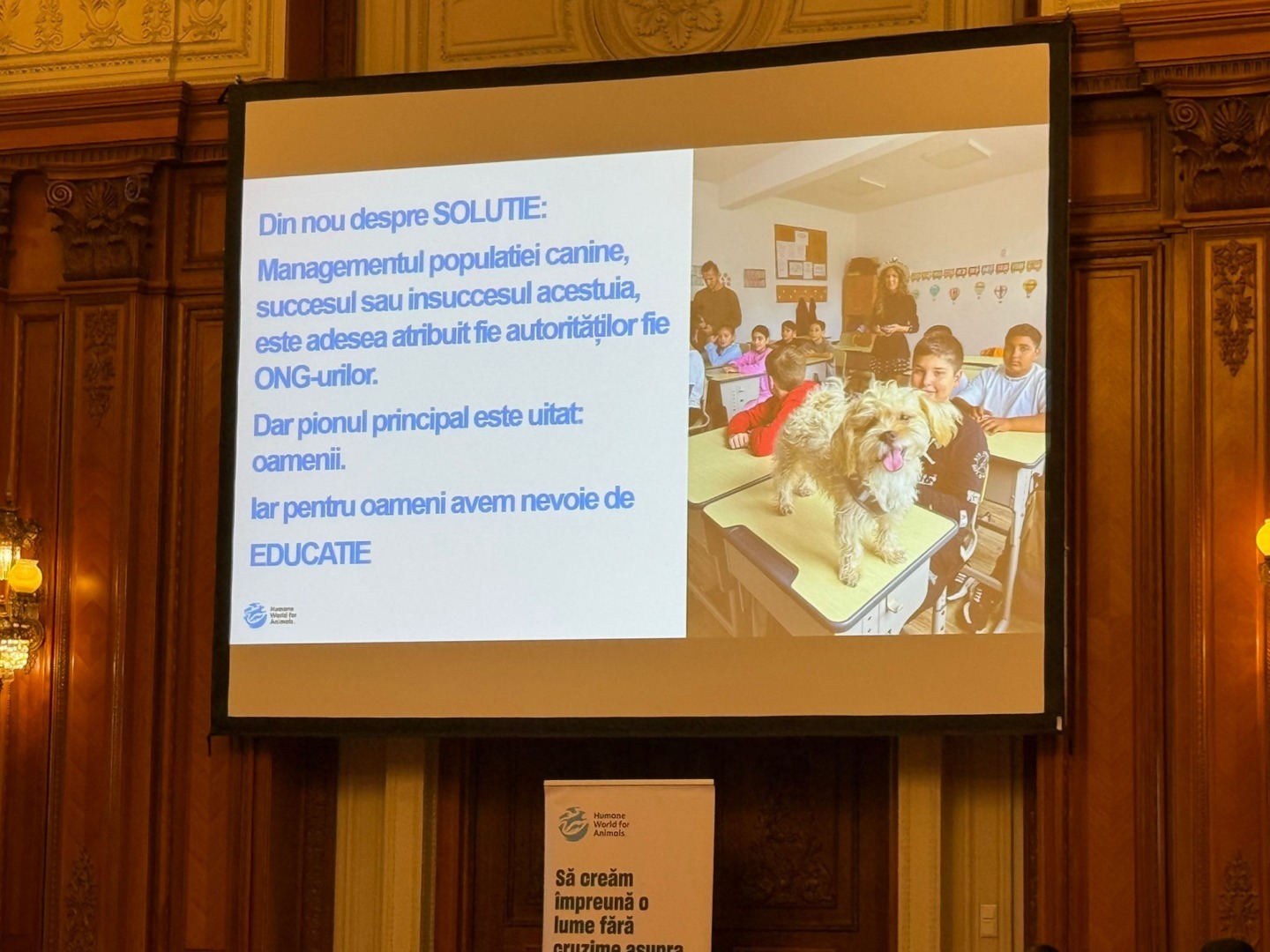 Evenimentul, desfășurat în Sala Drepturilor Omului, a reunit reprezentanți ai instituțiilor centrale, ai Poliției, ai consiliilor județene și ai inspectoratelor școlare, pentru a discuta despre soluții reale, responsabile și umane în gestionarea populațiilor de câini și pisici, dar și despre rolul crucial al educației în construirea unei societăți mai empatice față de animale.