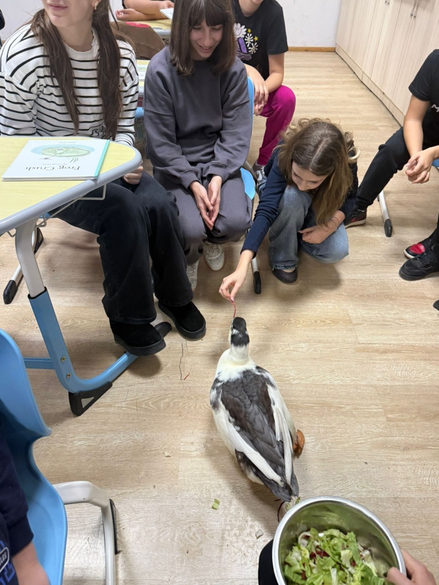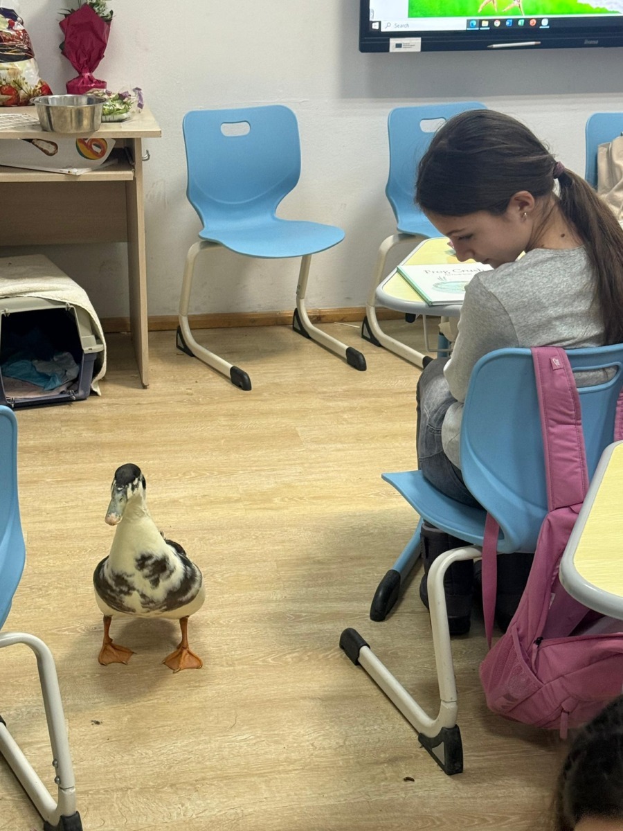 Elevii au interacționat cu o rață la „Ora cu și pentru animale”