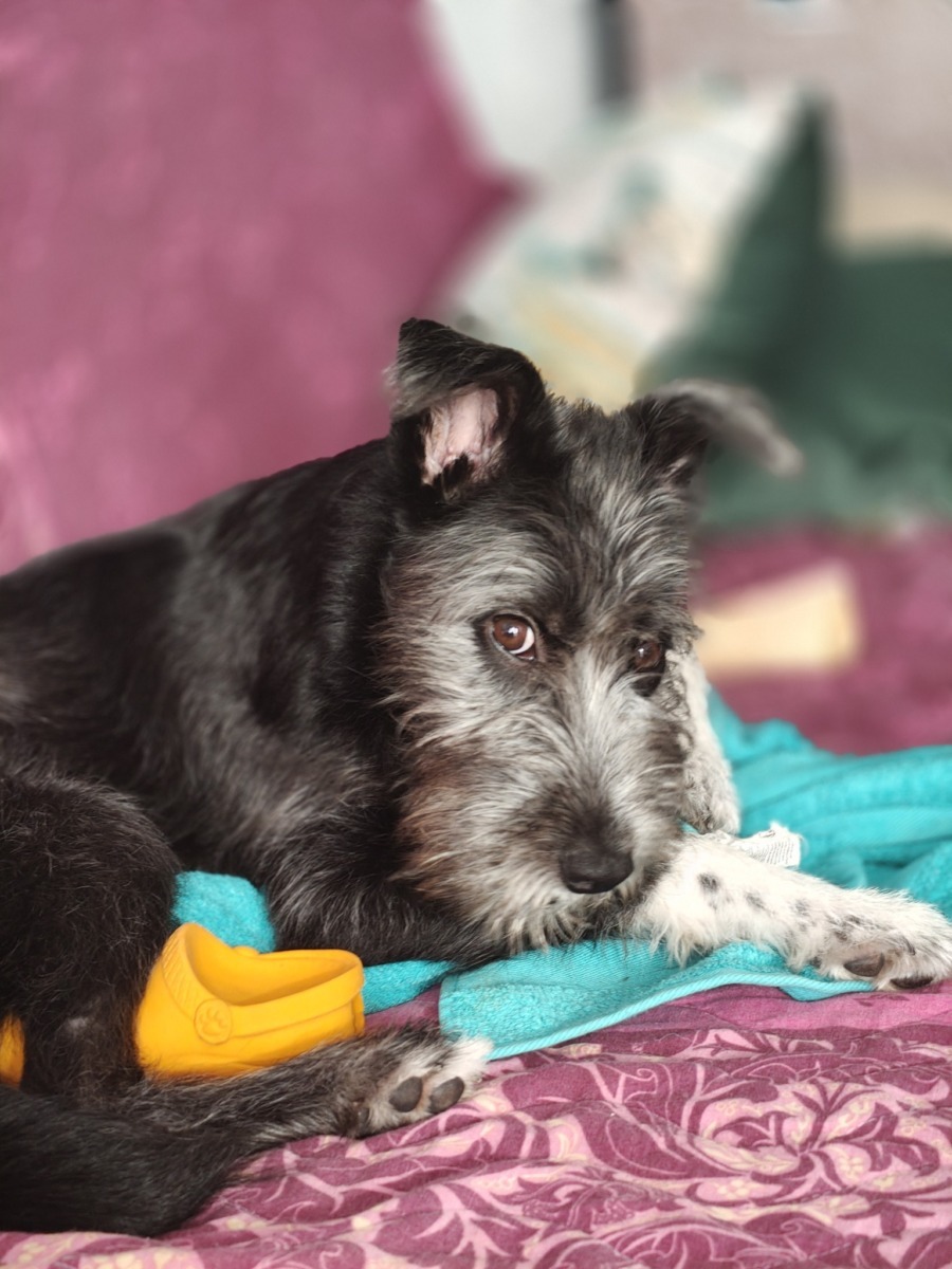 Primele zile nu au fost ușoare. Lexi venea din adăpost, cu frici, nesiguranțe și un bagaj emoțional greu de dus pentru un pui atât de mic.