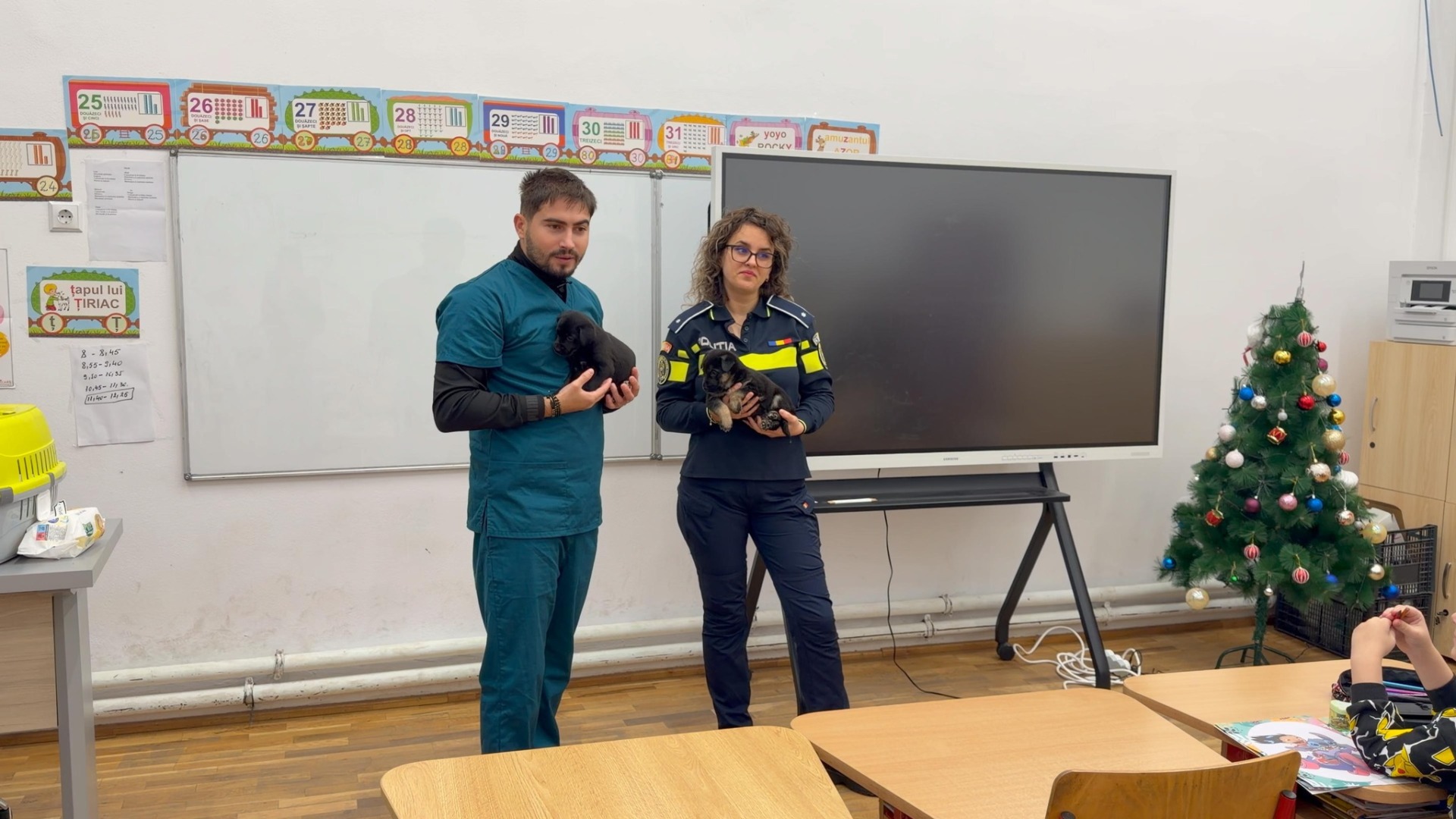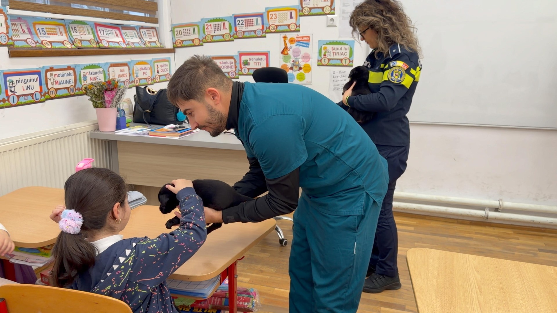 Elevii unei clase pregătitoare au avut ocazia să se întâlnească cu doi câini din adăpostul public din Târgu Jiu, abandonați de foștii lor stăpâni. În timp ce se jucau cu cei doi căței, copiii au aflat cât de importantă este adopția responsabilă și ce înseamnă respectul față de animale.
