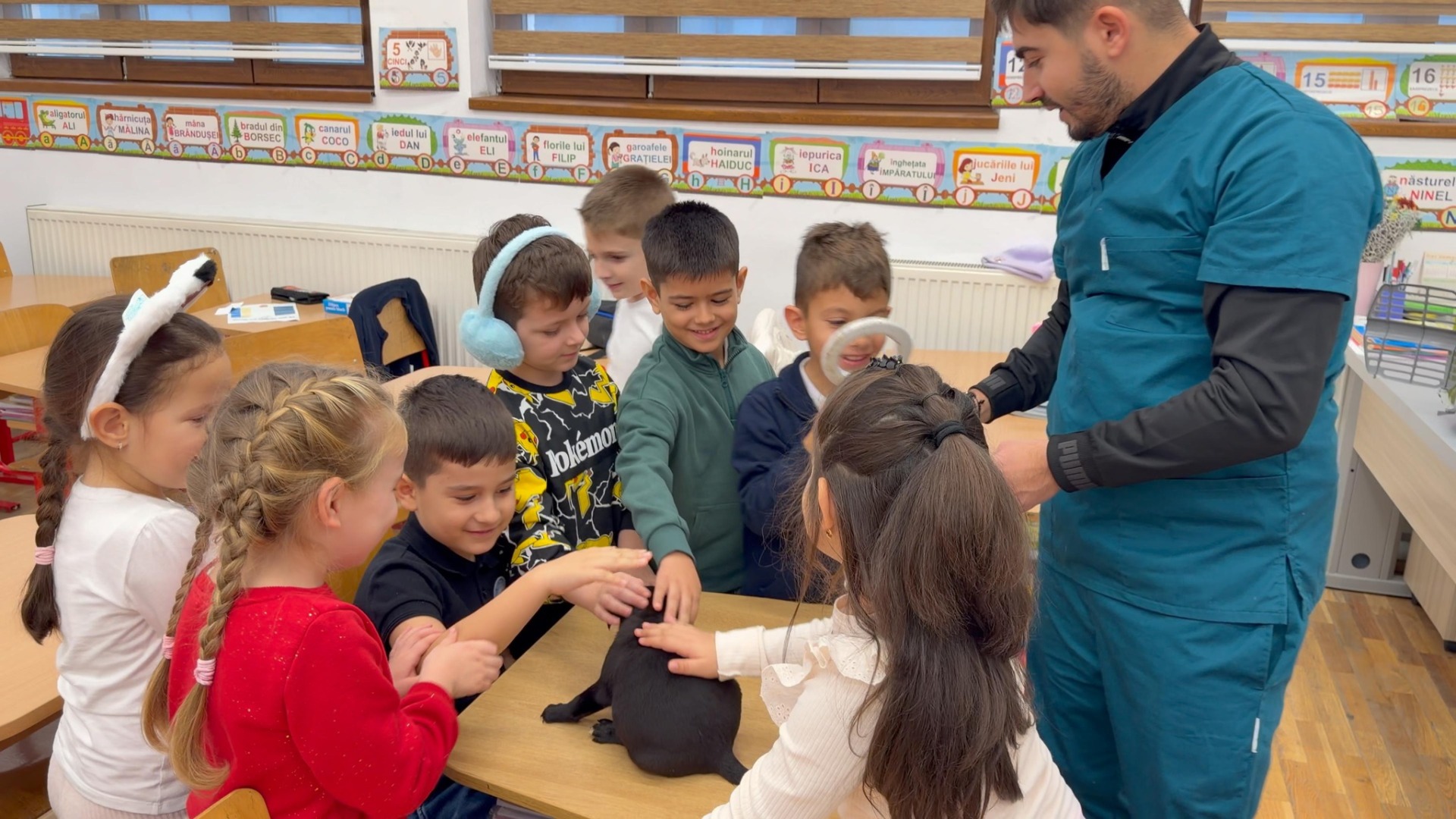 Reprezentanții Protecției Animalelor Gorj au vizitat elevii de clasă pregătitoare a „Colegiului Național Spiru Haret”, pentru o lecție despre responsabilitate și grijă față de animale. Alături de ei au fost și căței abandonați, care s-au jucat cu copiii.