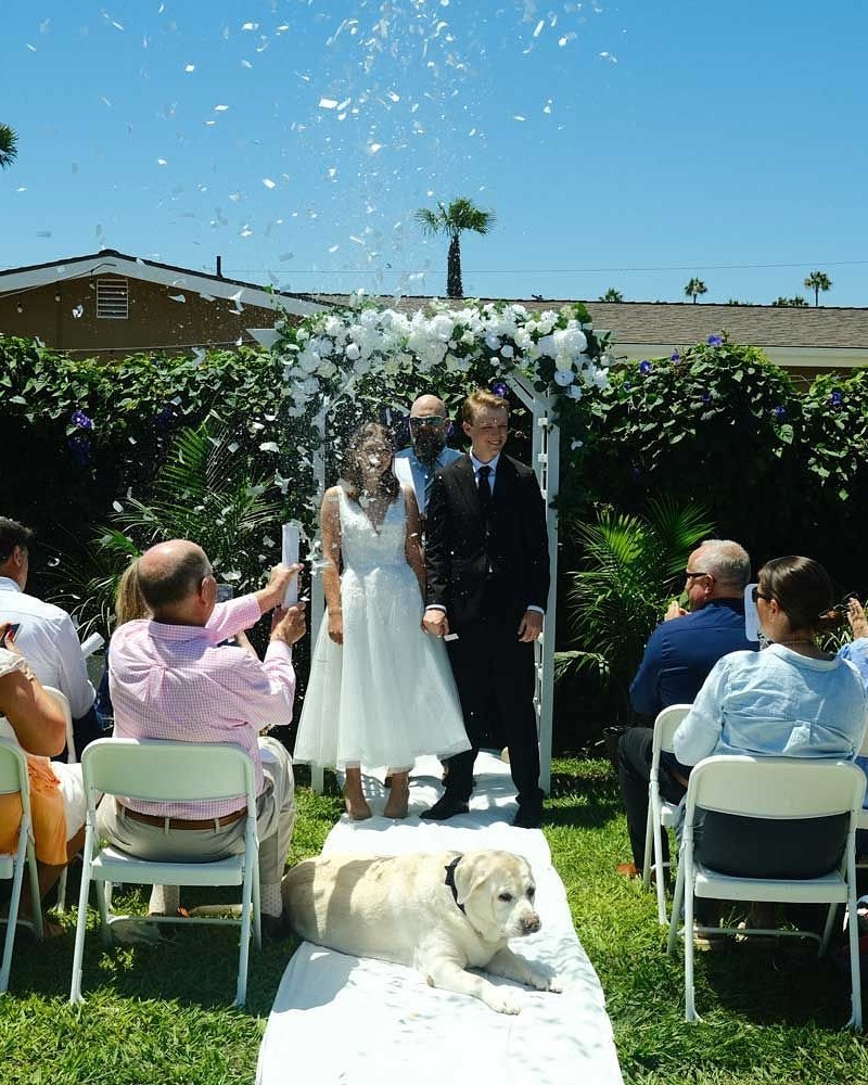 Hope și Andrew, în vârstă de 23 de ani, s-au căsătorit la finalul lunii iulie într-o ceremonie restrânsă, unde au fost prezenți membri ai familiei și prieteni. Un loc special la ceremonie l-a avut Mike, labradorul familiei, în vârstă de 11 ani. Mama miresei a declarat că Mike a fost mereu o parte importantă din viața fetei sale și de aceea au decis să-l includă în nuntă.