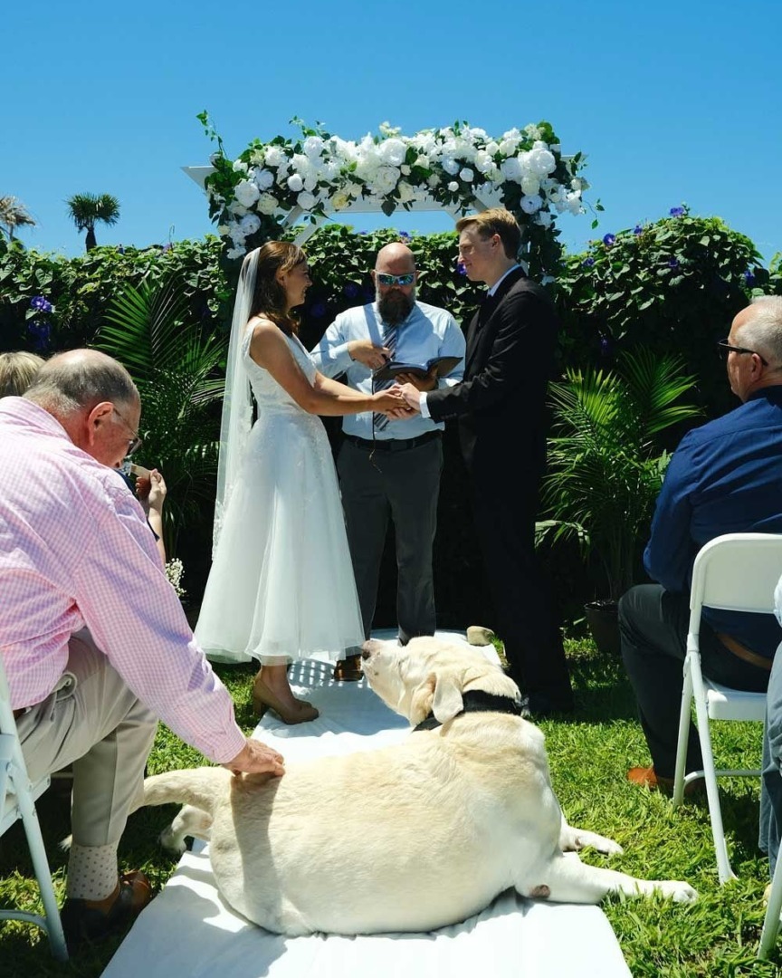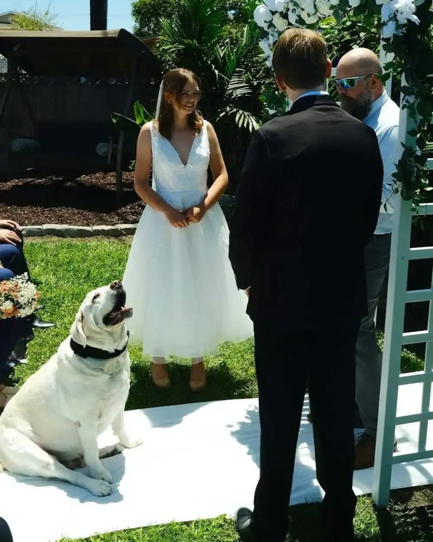 Femeia a descris momentul în care preotul a început să oficieze cununia, iar Mike a ales acel moment să se ridice de la locul său și să se așeze între cei doi miri. Pe parcursul ceremoniei, Mike a mers printre invitați și aștepta să fie mângâiat. Până la final, el a rămas la picioarele stăpânei sale, cuminte și atent la tot ceea ce se întâmpla în jurul său.