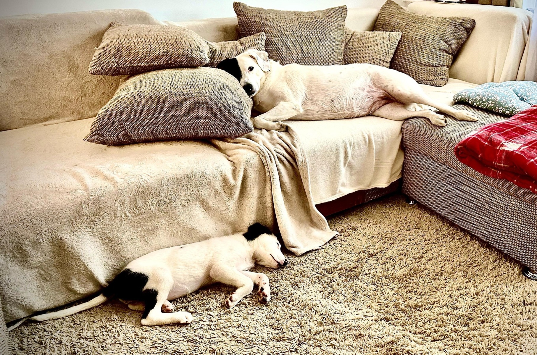 „Ambele se sperie de petarde, așa că ne-am pregătit din timp playlistul pentru relaxarea câinilor și am transformat baia în refugiu când a început „nebunia” afară. Au fost sărbători speciale, de Crăciun și Revelion, diferite, dar nu ni le-am mai putea imagina altfel”, au declarat stăpânii lor.