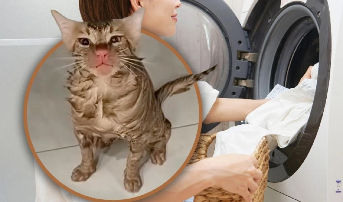 The cat, named Jintiao, spent 10 minutes spinning inside a washing machine until the cycle ended. The owner only discovered the pet afterward.