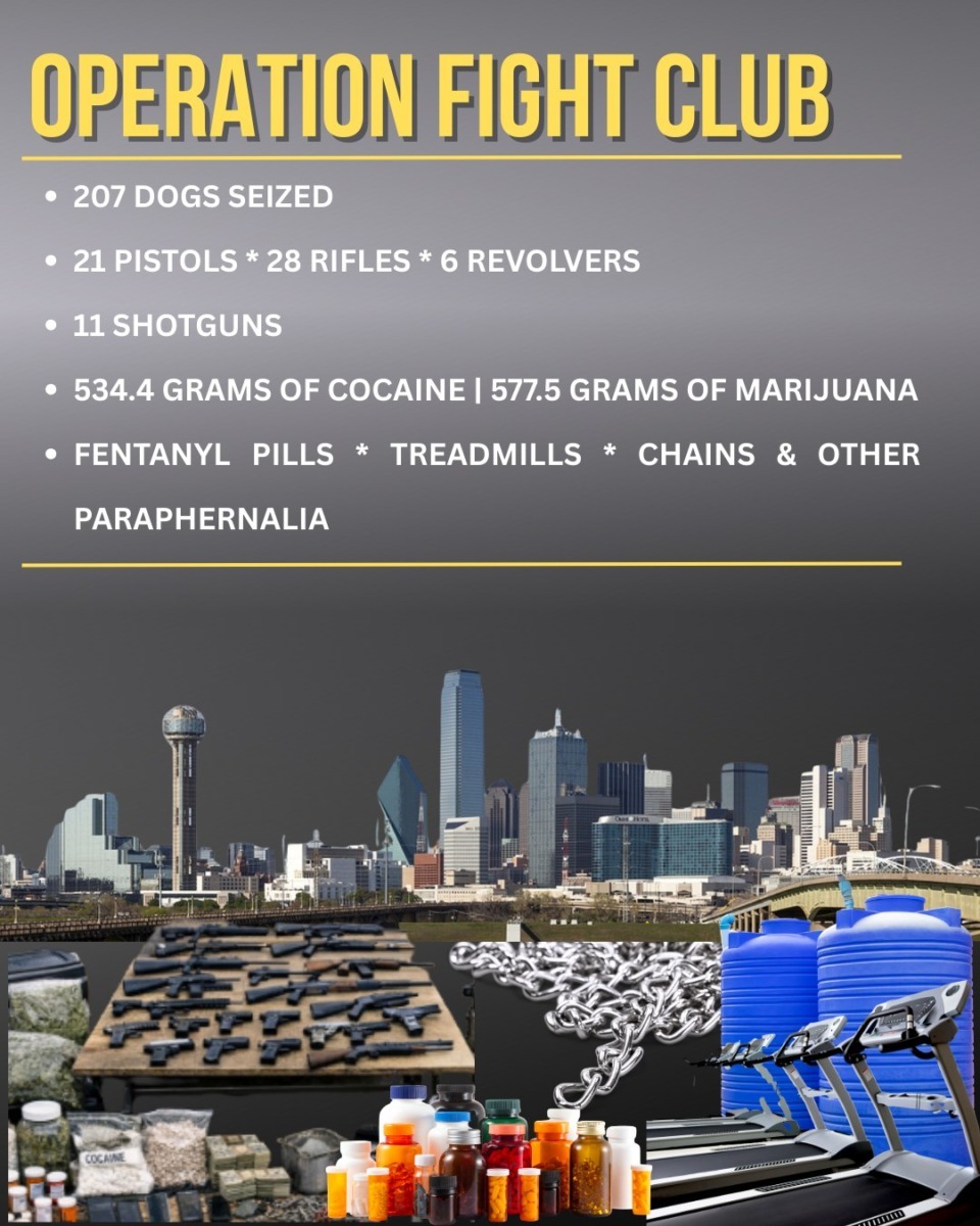 Pe lângă salvarea animalelor, poliția a confiscat arme furate și alte dovezi legate de luptele canine, potrivit unui mesaj publicat de Poliția din Dallas pe rețelele de socializare.