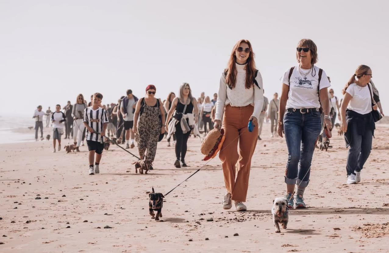 Oameni și câini la plimbare pe plajă Sursa foto: Southwold Sausage Walk