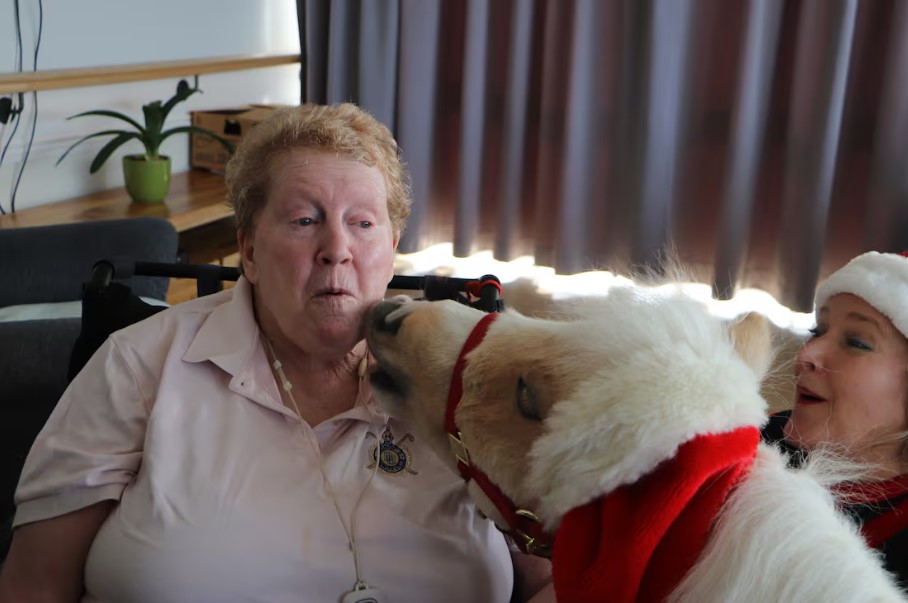Animalele vin în vizită cam o dată pe lună, potrivit lui Lysanne Hamel, coordonatoarea de activități de la Wales Home. Situat într-un orășel la aproximativ 150 de kilometri est de Montreal, multor rezidenți ai căminului de bătrâni le lipsesc animalele de companie. „Faptul că îi pot revedea și mângâia le aduce aminte de timpul petrecut acasă”, a explicat Hamel.