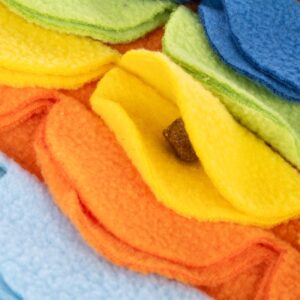 Pe lângă aspectul adorabil, în formă de pește colorat în nuanțe de portocaliu, verde, galben și albastru, acest covoraș este conceput pentru a stimula instinctele naturale ale câinilor de a adulmeca și căuta hrana. Sub solzii textili colorați se ascund gustările preferate sau hrana uscată, iar misiunea câinelui este să le descopere.