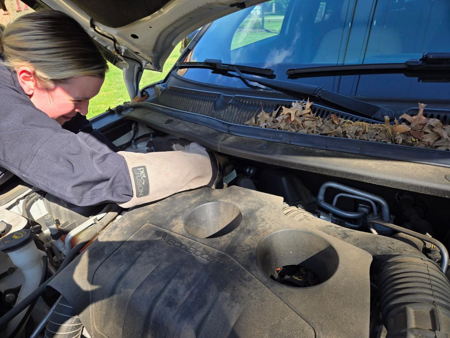 O femeie scoate o pisică de sub capota unei mașini. Sursa foto: Middletown Township Police Department