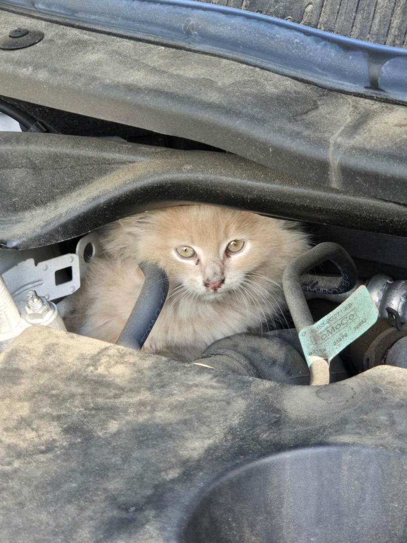 Pisică aventurieră salvată de sub capota mașinii unui senator! Povestea care a cucerit internetul (GALERIE FOTO)