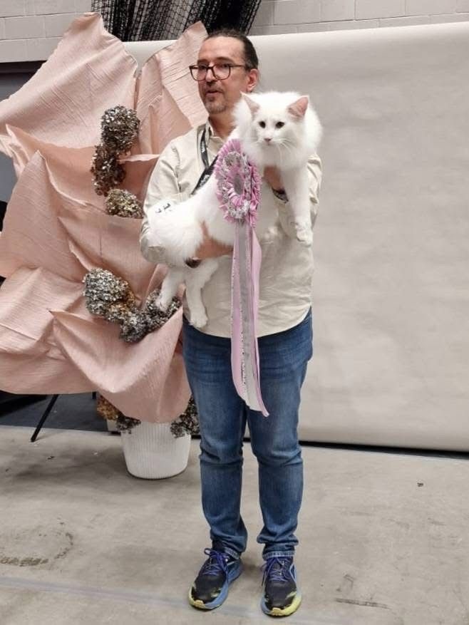 Prosecco, un Norvegian de Pădure alb, crescut de Aurelian și Cora Ionescu a dus mai departe tradiția de familie, fiind fiul Campionului European FIFe 2024,