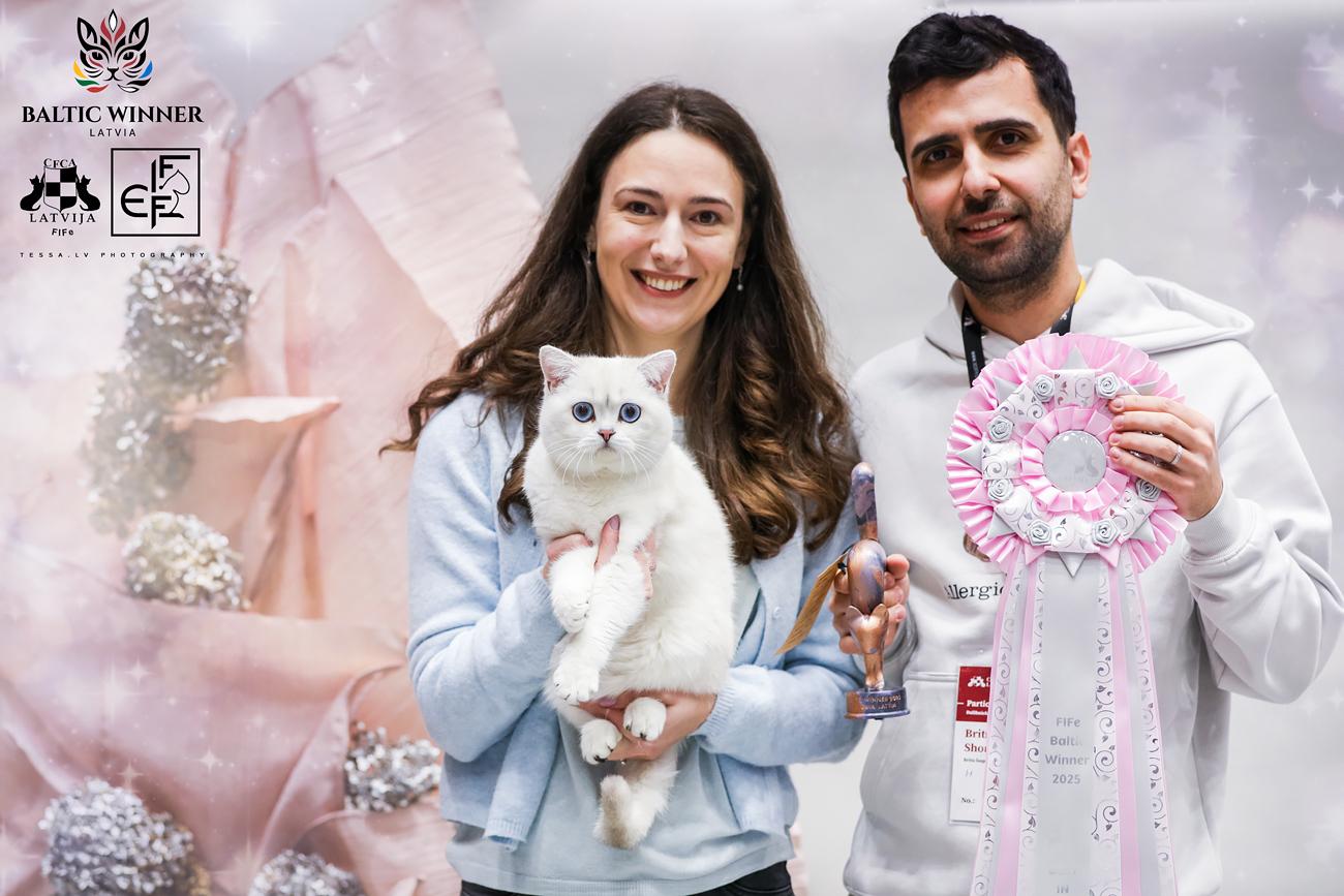 Nexus, motănel British Shorthair Silver cu ochi albaștri – deja Campion European FIFe 2025 – crescut de Oana Pintilii și Alexandru Paraschiv;
