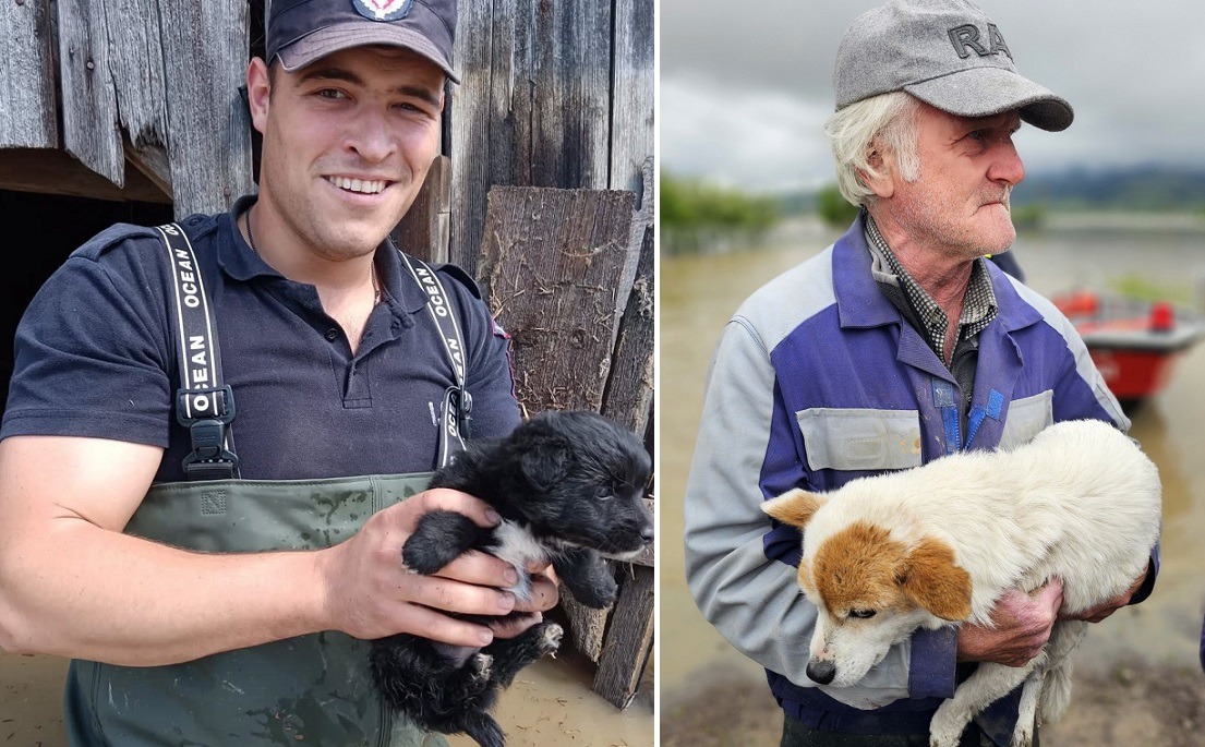 În urma inundațiilor care au afectat județul Covasna, pompierii de la Inspectoratul pentru Situații de Urgență Covasna (ISU Covasna) continuă să dovedească faptul că empatia și curajul nu cunosc limite. Sâmbătă, 31 mai, în timpul unei misiuni de evacuare desfășurate în localitatea Băcel, salvatorii au descoperit într-o gospodărie patru animale care așteptau ajutor: doi câini adulți și doi pui.