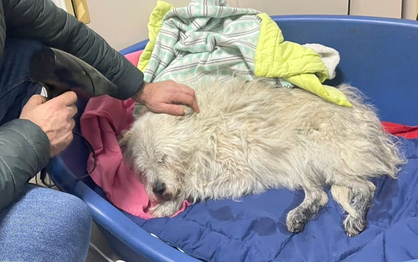 Cu echipamentele de salvare necesare, Tiberiu a pășit cu grijă pe gheață și a ajuns la micuțul patruped. Cățelul a fost scos în siguranță și adus la mal, tremurând și hipotermic. Pentru a-l încălzi, salvatorul l-a înfășurat chiar în propriul echipament.
