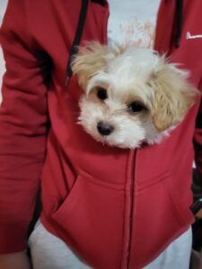 Mihaela: Teddy a apărut în viața mea pe 14 octombrie 2022. Mi-am dorit mult un cățel, după ce cu ceva timp înainte ma îndrăgostisem de verișorul lui Teddy. Atunci am zis că vreau și eu! Când am primit poză cu el, abia se născuse, am zis că vreau. Apoi am primit poze cu el când avea câteva săptămâni și l-am ales din poză. Petele maro m-au cucerit. În toată povestea asta am fost încurajată de prietenul meu. Așa l-am luat împreună! Chiar el a fost cel care a luat decizia finală de a îl lua, știind cât de mult îl vreau.