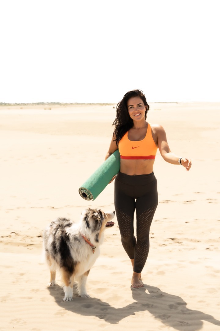 Eu am descoperit DOGA complet întâmplător. În timp ce mă antrenam pentru un maraton, m-am accidentat la genunchi și a trebuit să fac stretching și yoga pentru recuperare. Însă câinii mei își făcuseră un obicei din a veni pe covorul meu de yoga. Inițial încercam să îi alung, dar, văzând că se încăpățânează să participe, am decis să îi las să se implice. Încet, încet, am început să fac posturile de yoga alături de ei. Când am postat poze pe rețelele sociale, cineva mi-a spus: „Ai început DOGA!”. Curioasă, am început să mă documentez, am găsit cărți, apoi am luat legătura cu Suzi Teitelman, fondatoarea DOGA, și m-am format cu ea. De atunci, DOGA a devenit o parte esențială a vieții mele.