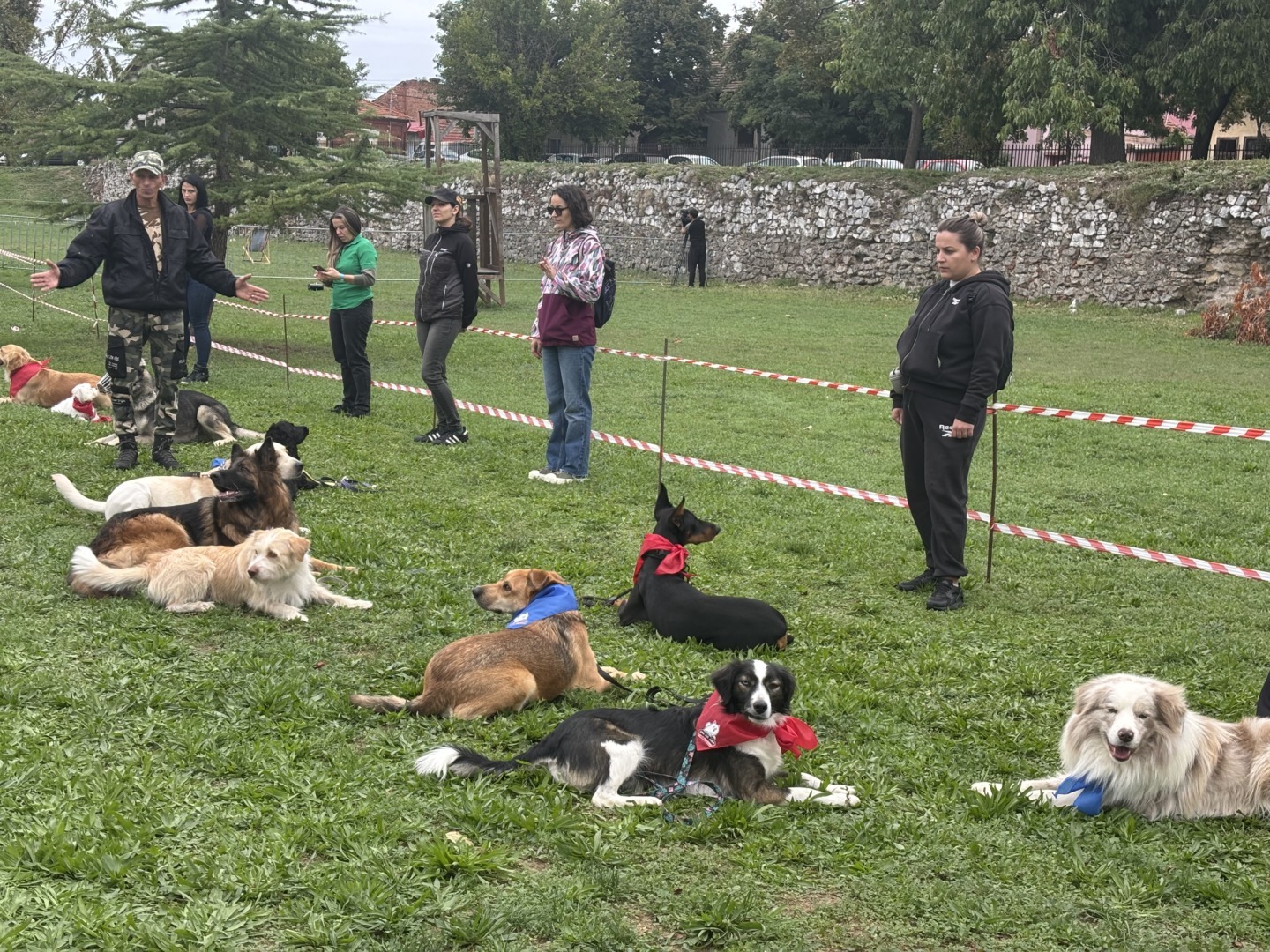 Câini aliniați lângă stăpâni Sursa foto: Pets&Cats