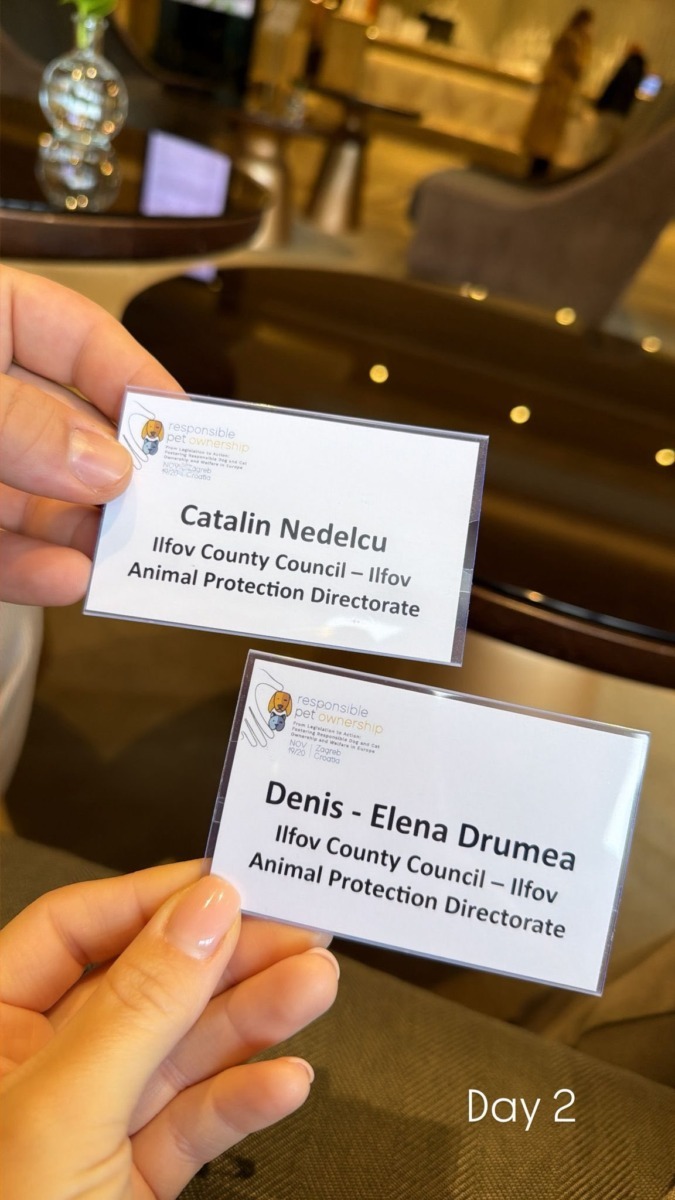 Doi dintre colegii Protecția Animalelor Ilfov, Denisa Drumea și Cătălin Nedelcu, au participat recent la o conferință internațională importantă, desfășurată la Zagreb: „From Legislation to Action: Fostering Responsible Dog and Cat Ownership and Welfare in Europe”. Evenimentul a reunit specialiști și instituții relevante și a fost organizat de RSPCA Europe, Purina Pet Care Europe, World Organization for Animal Health (WOAH) și Federația Medicilor Veterinari din Europa, cu sprijinul Ministerului Agriculturii din Croația.