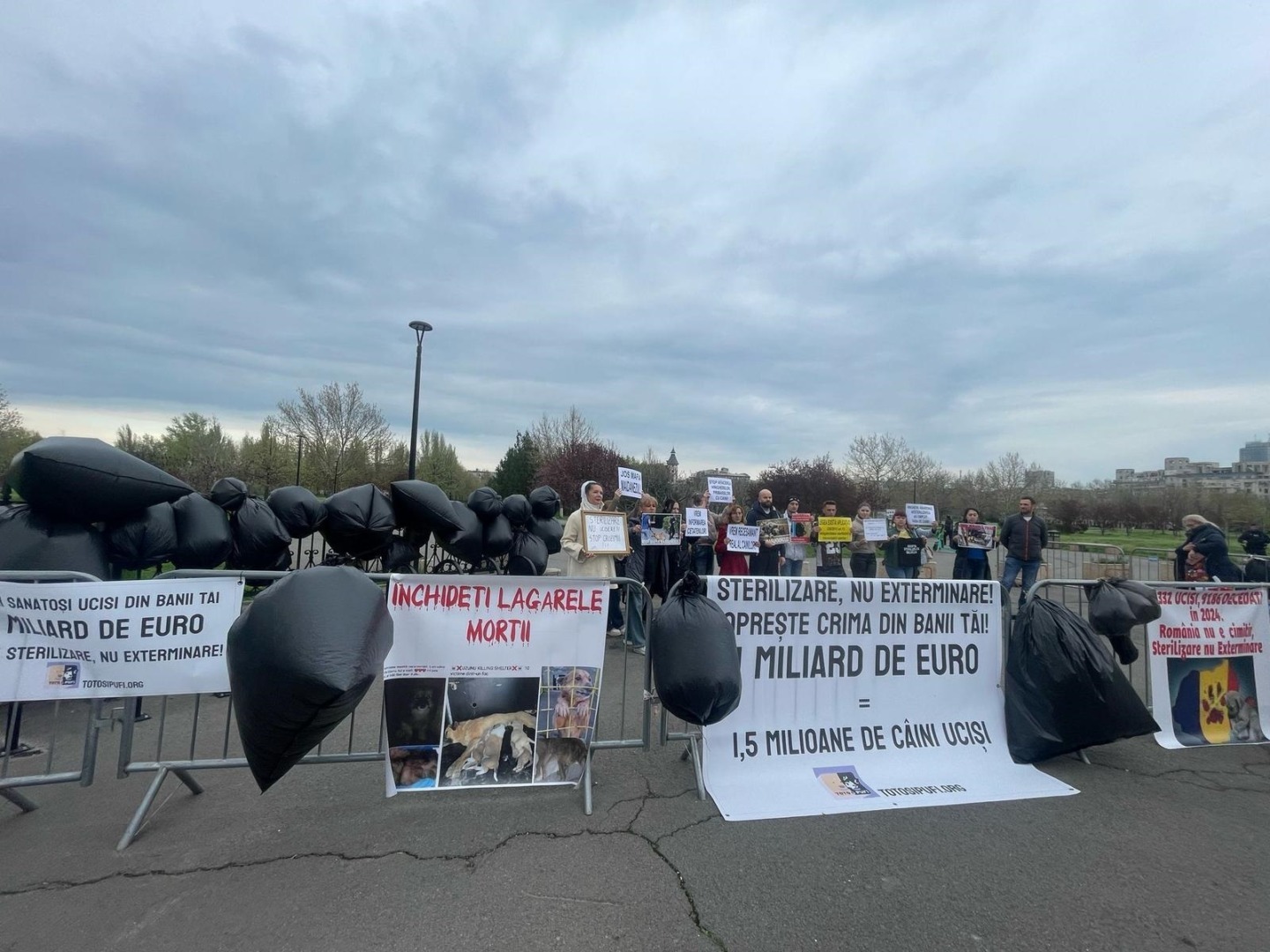 Câteva zeci de persoane au protestat, vineri, de Ziua Internațională a Animalelor Fără Stăpân, în fața ANSVSA, împotriva eutanasierilor în masă care au loc în fiecare an în România. Susținătorii animalelor vorbesc despre 1 miliard de euro cheltuit de statul român pentru eutanasiere, în timp ce în campaniile de sterilizare au fost investite sume foarte mici, și acelea doar în ultimii ani.