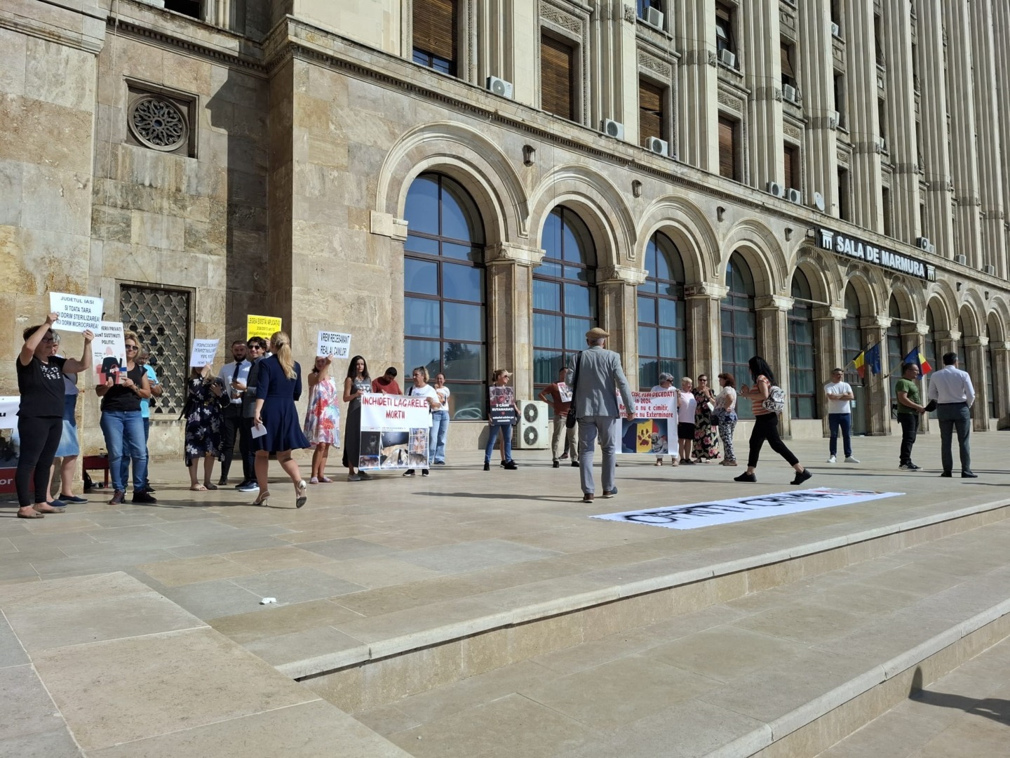 Miercuri, 3 septembrie, în timp ce Autoritatea Națională Sanitară Veterinară și pentru Siguranța Alimentelor (ANSVSA) a organizat o dezbatere publică pe marginea modificărilor legislative, la doar câțiva metri distanță, în Piața Presei Libere, zeci de organizații pentru protecția animalelor au protestat vehement împotriva planurilor acestei instituții.
